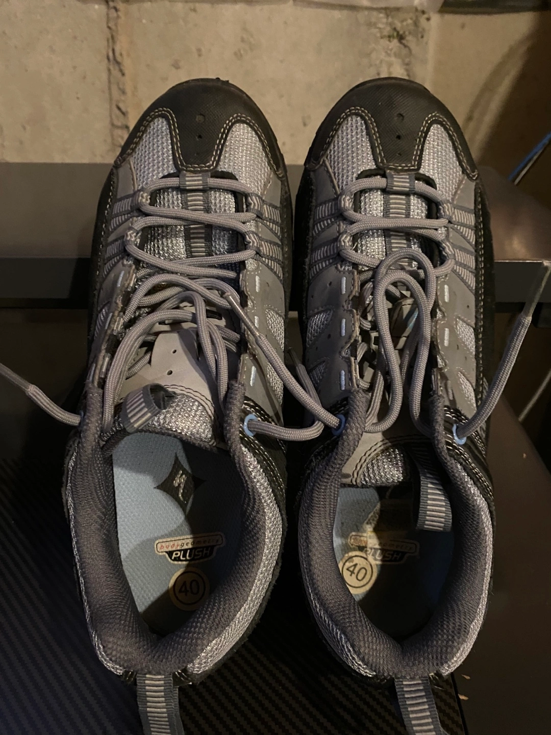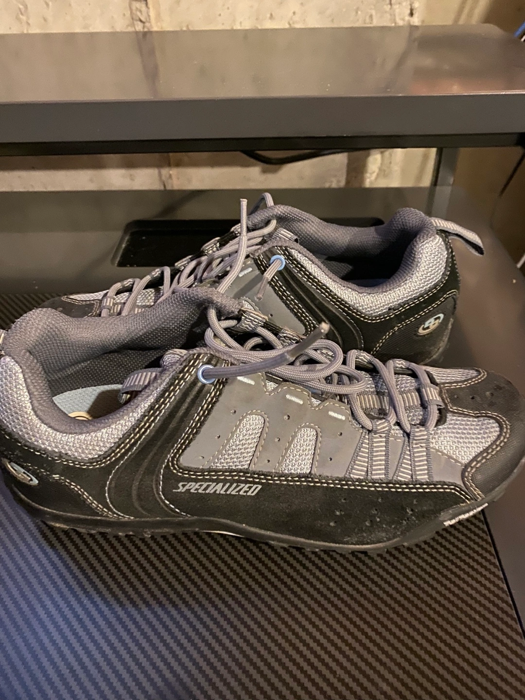 43Black and grey women's mountain bike shoes. Size 40 and 9 Good condition No damaged $25 with no negotiation price