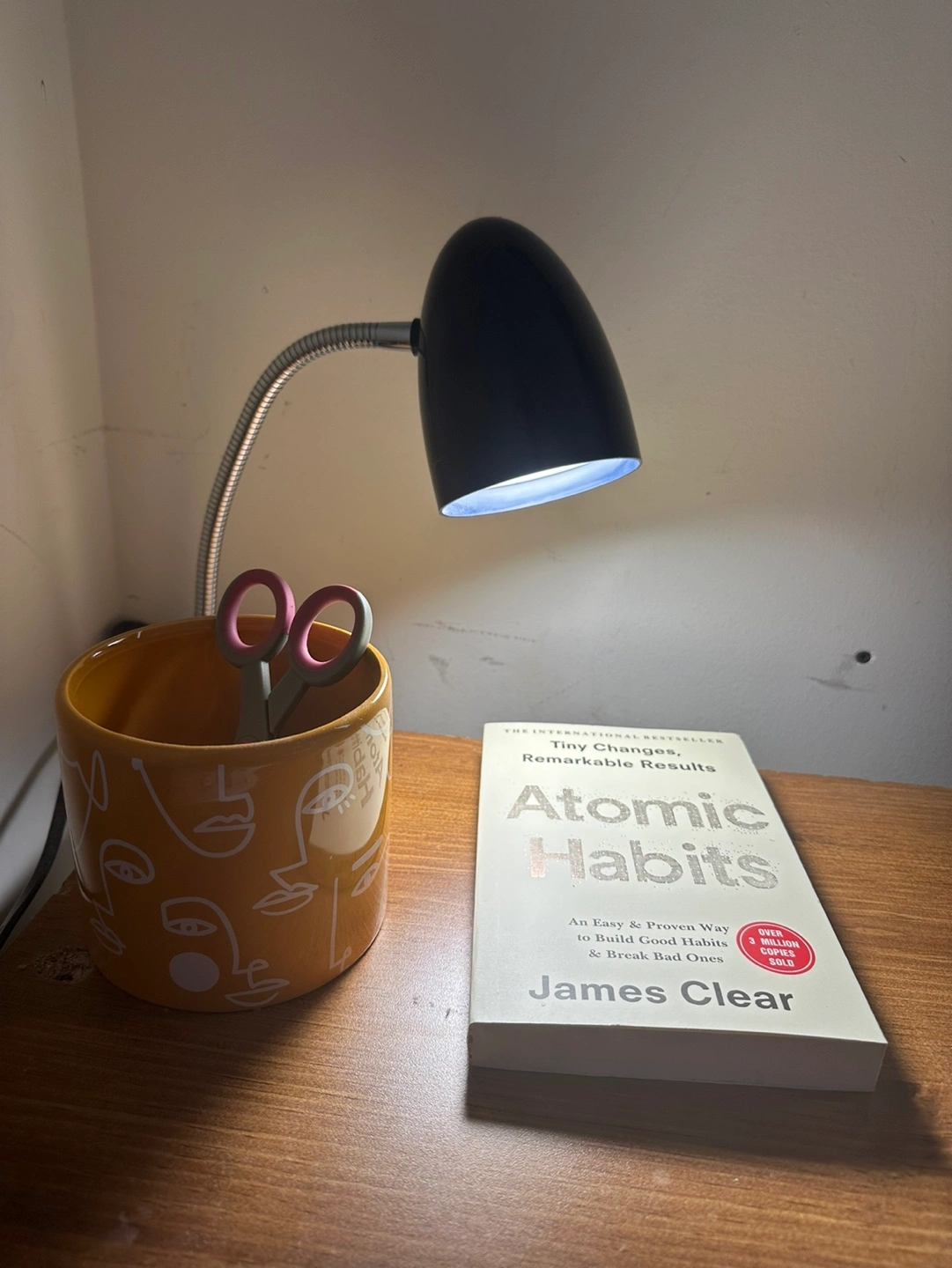 Black desk lamp with a flexible neck and a white light bulb. Just brought on June 2024, moving out of country so selling it cheap.