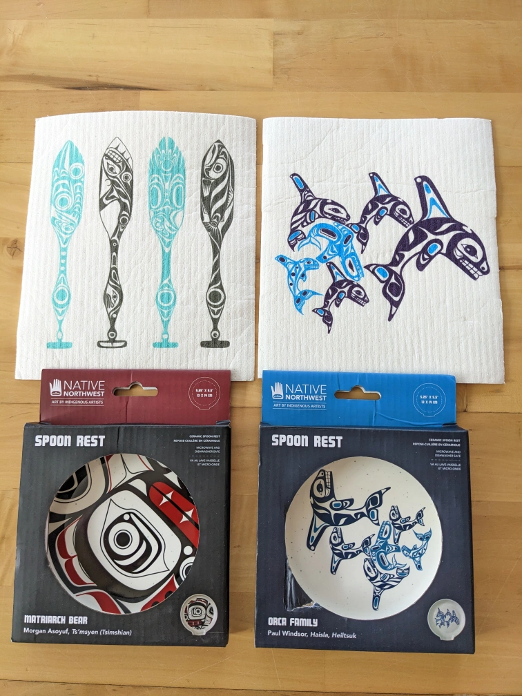 Native Northwest Spoon Rest Set, cellulose sponges