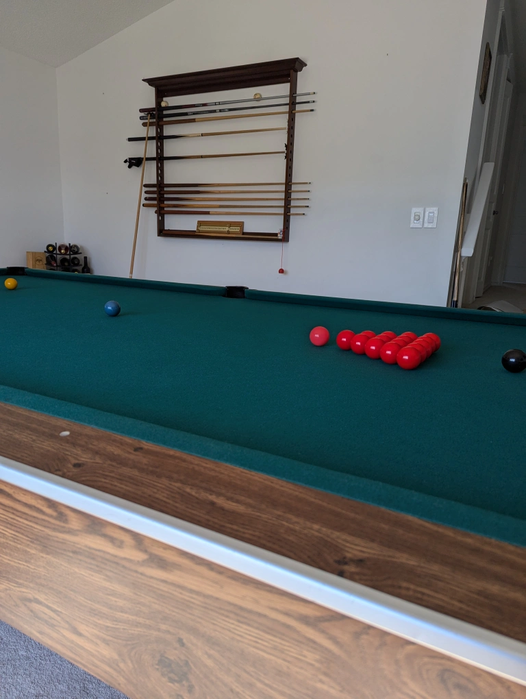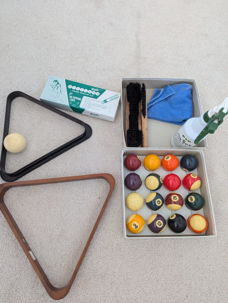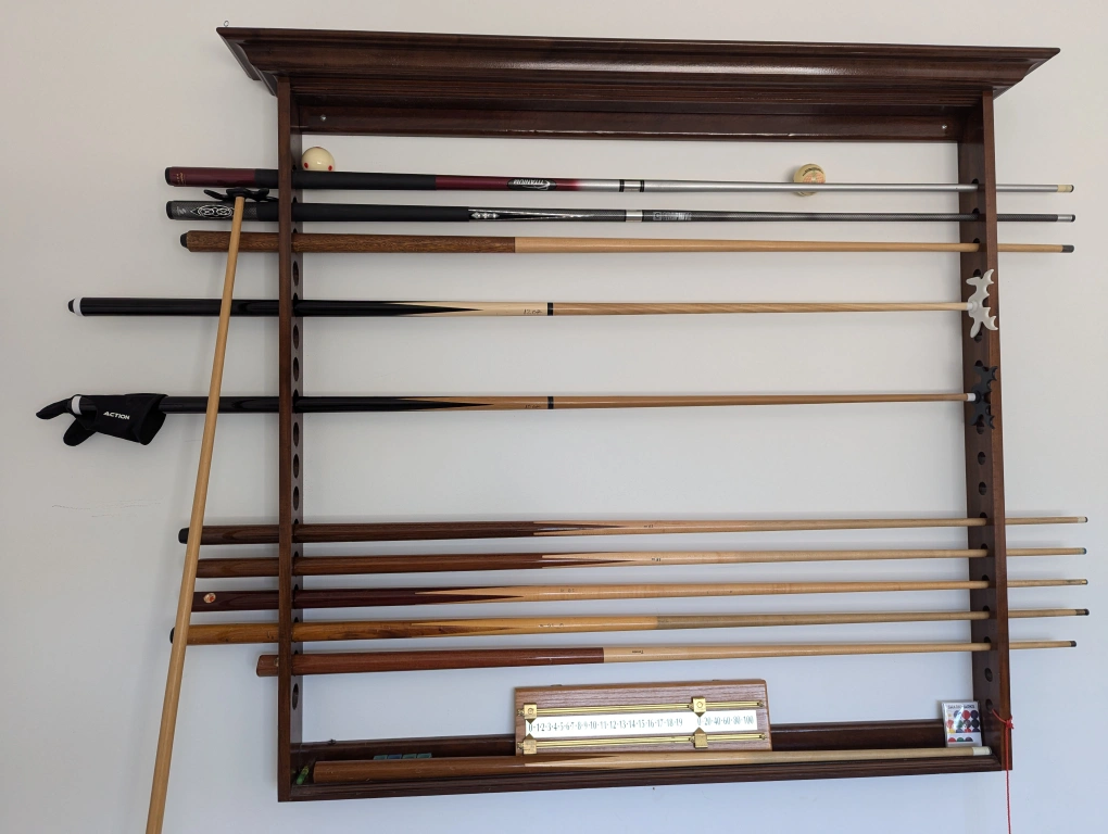 Lots of other accessories, including the cue rack, bridges, shorties, cover etc.