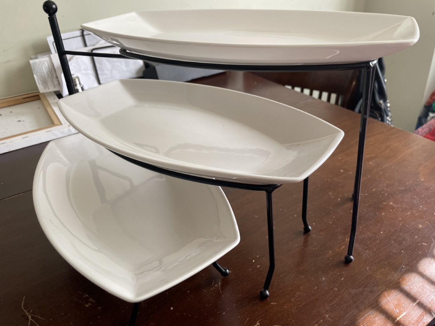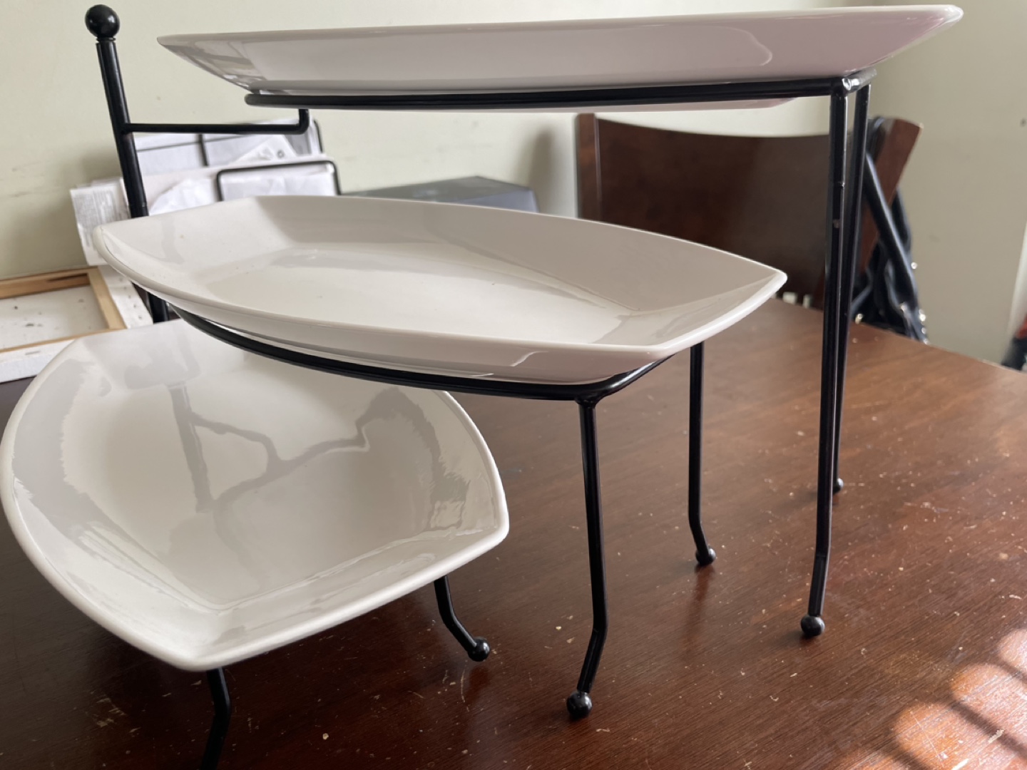 Ceramic 3 teir serving tray with stand. Smoke free and pet free home