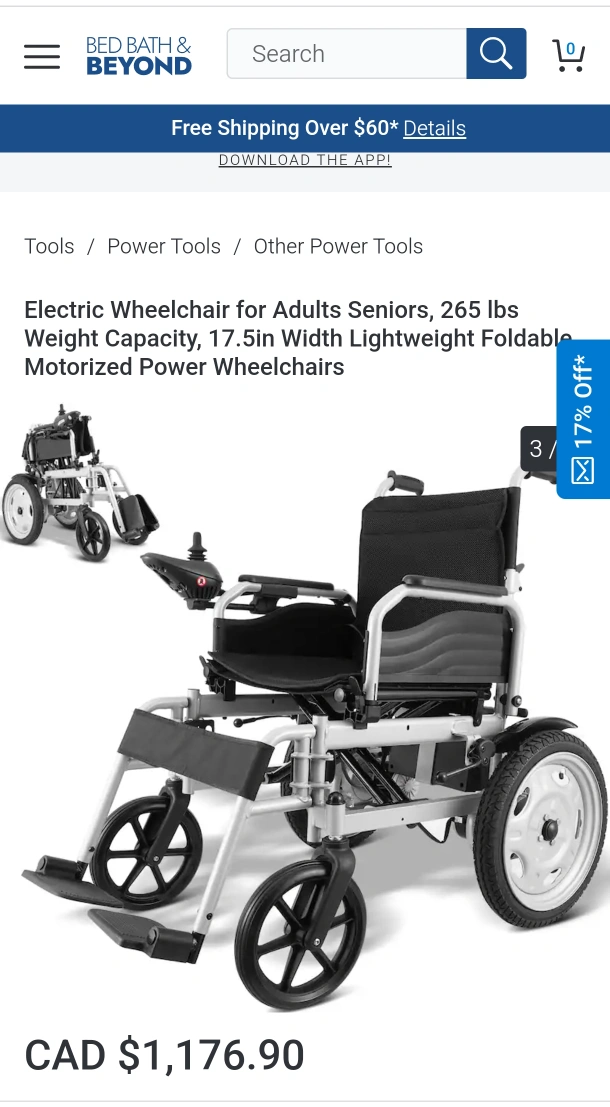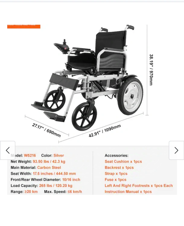 Electric Wheelchair for Adults Seniors, 265 lbs Weight Capacity, 17.5in Width Lightweight Foldable Motorized Power Wheelchairs