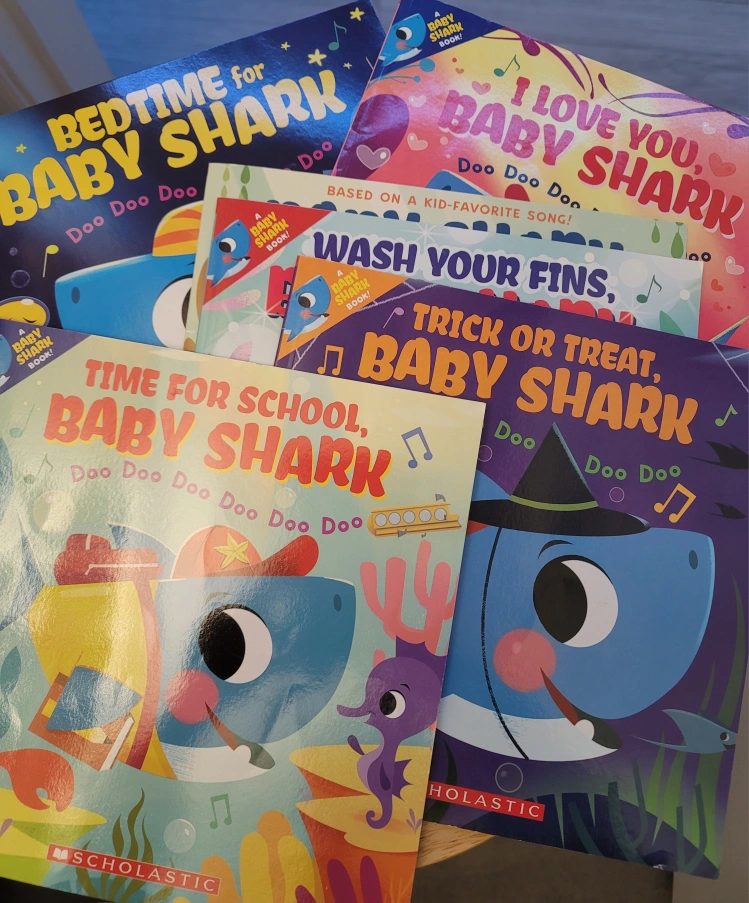 Baby Shark from Scholastic website. Set of 6 like new books.