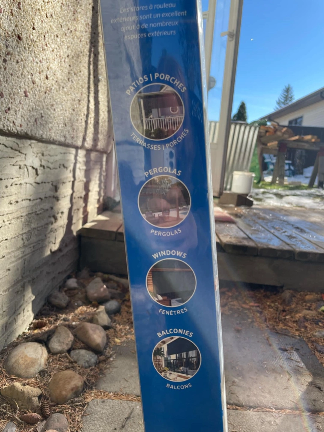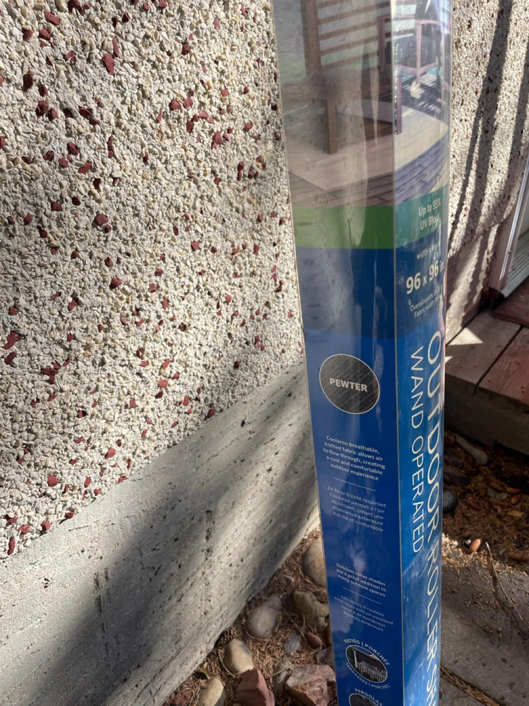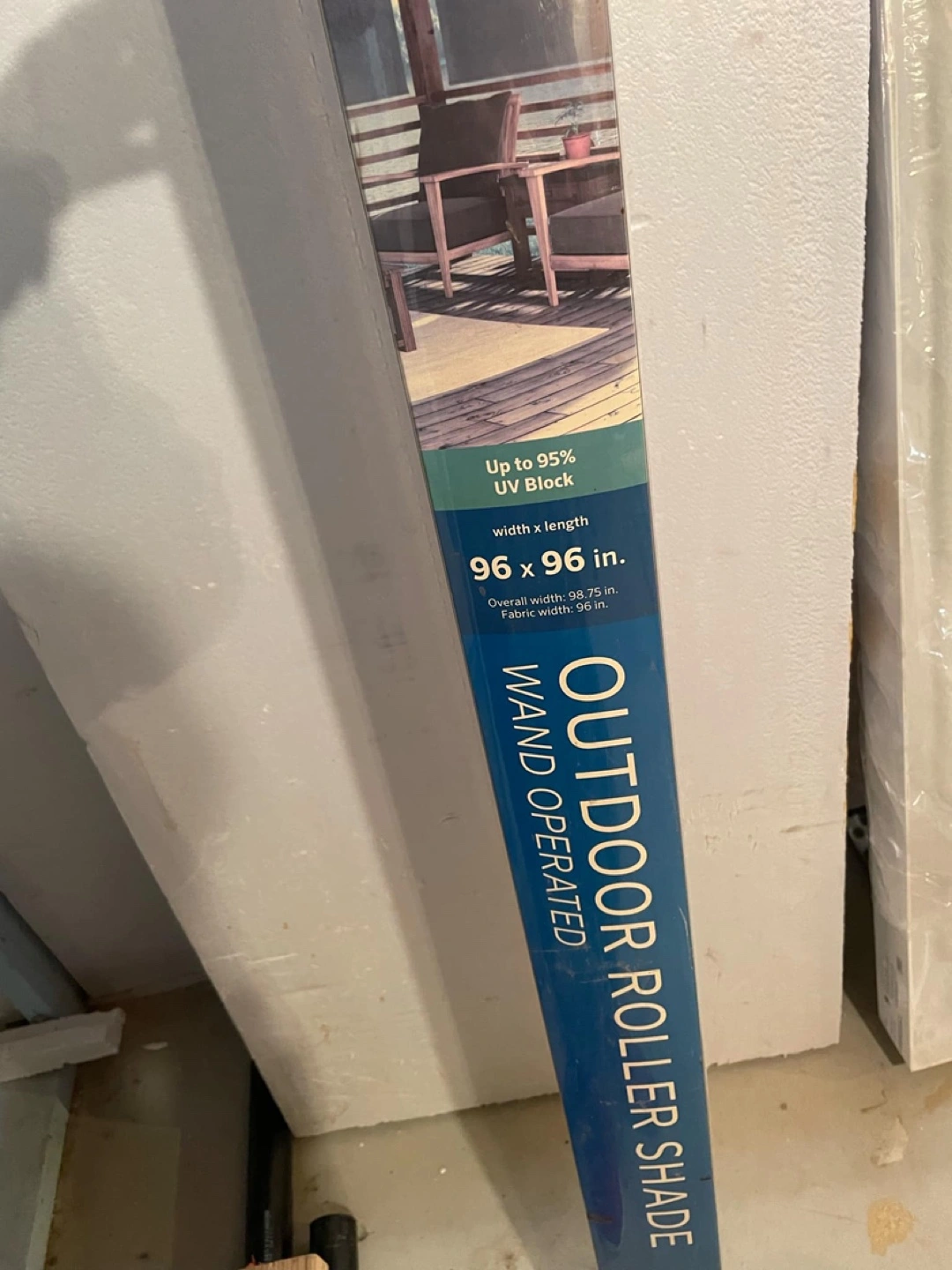 Coolaroo outdoor roller shade Wand operated 96x96 inches Provides privacy and sunblock 95% UV blocky Breathable fabric Never used Asking $25