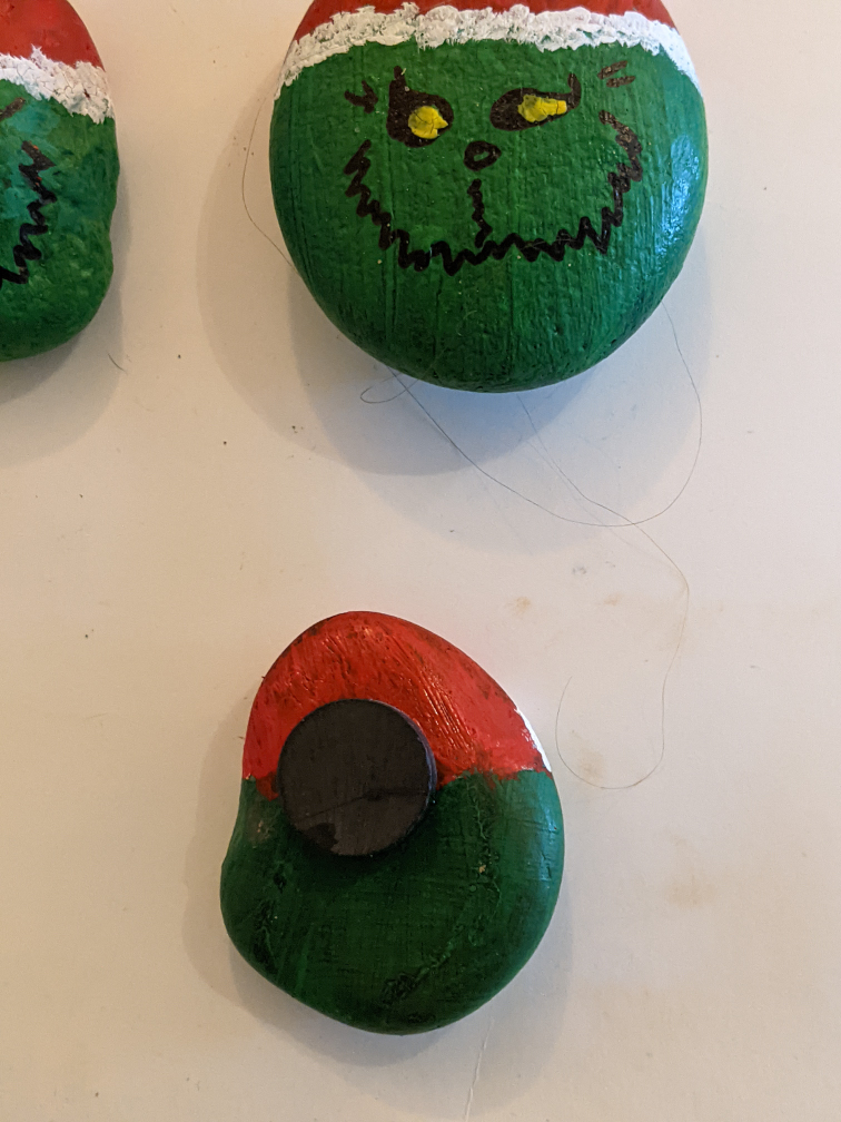 Hand-painted Grinch magnets. Great for Christmas stockings, holiday decor, refrigerator magnets, or festive home decor.