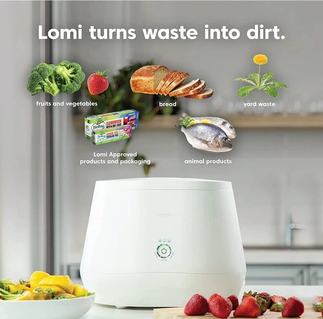 Lomi is an electric countertop composter that turns your food waste into odorless, organic dirt instead of sending it to landfills. This product is brand new and unopened. I will include the description from the store.