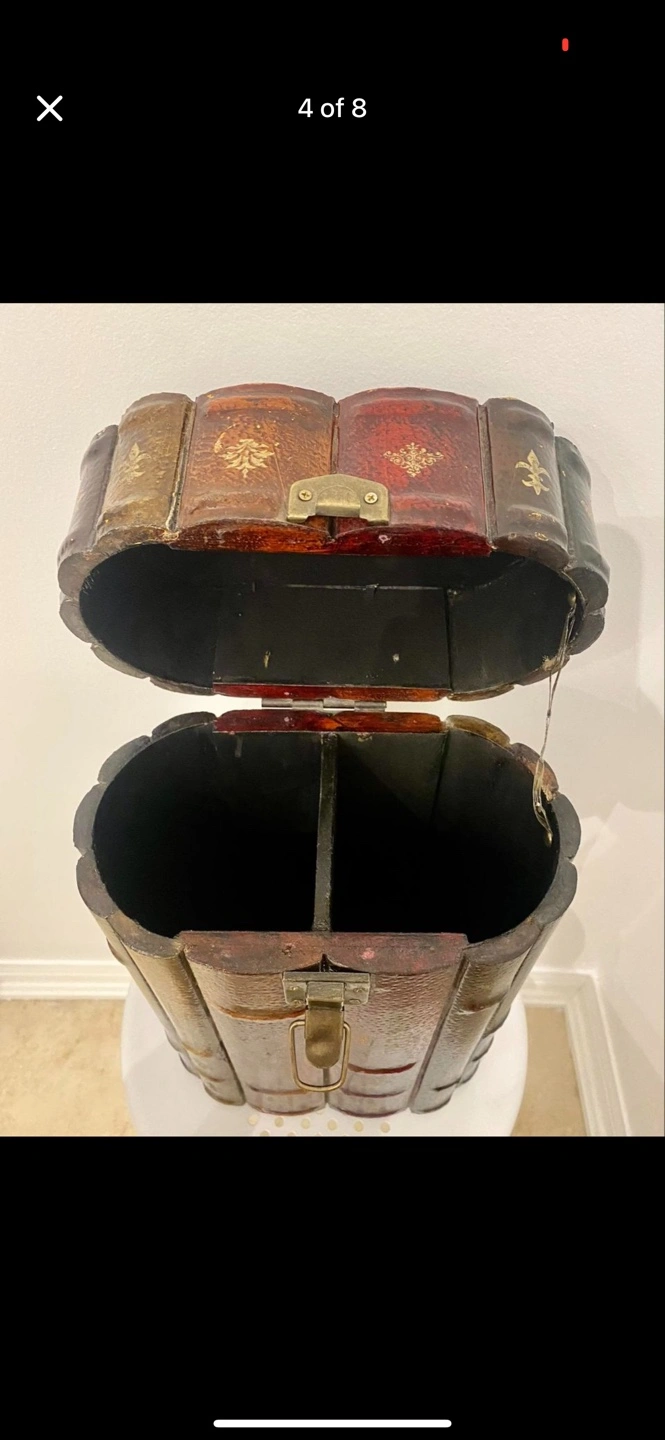 Classic Hideaway for your Bottles of Wine ~ Perfect for any Room ~ Heavy Solid Wood & Painted in Warm Earth Tones ~ Antique Brass Hardware ~ Approx. 13" High ~ Swing Lock/Latch on Front ~ Excellent Condition ~ Shows Some Signs of Wear See Photos.