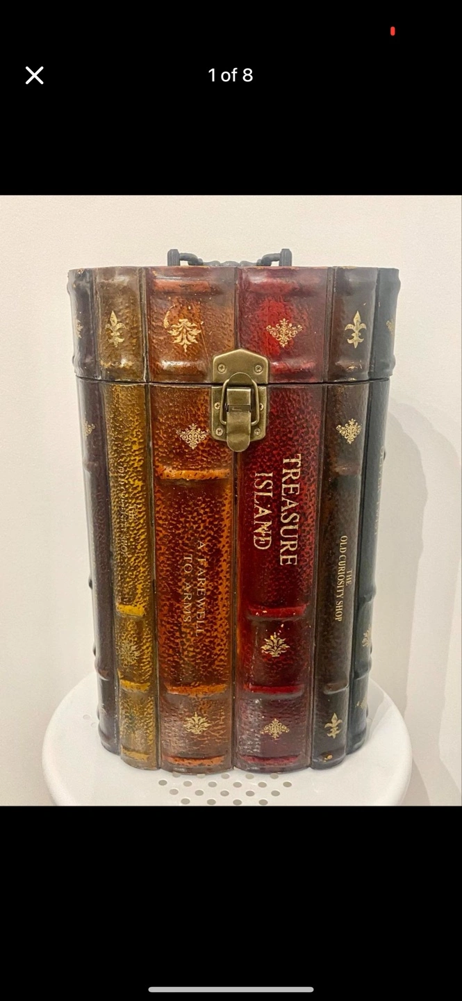 Vintage Wood Faux Book Wine Bottle Liquor Box Cabinet ~ Holds 2 Bottles