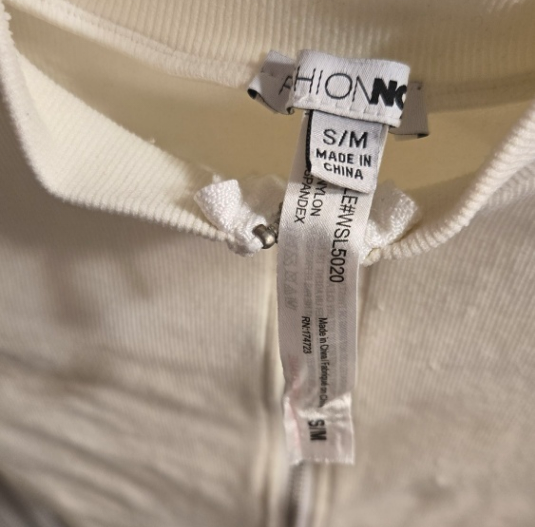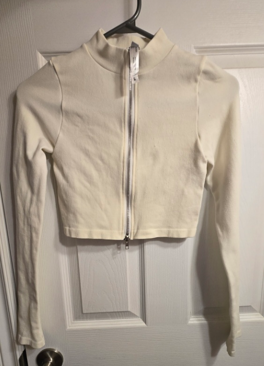 White long sleeve crop top with a front zipper. Size S/M. I am giving it away because I don't wear it at all and I think it should go to someone who actually wants it :)