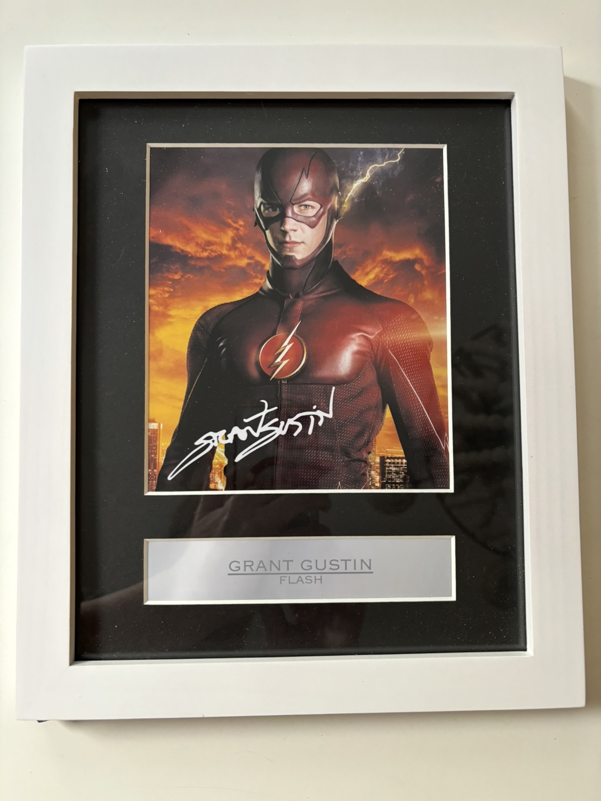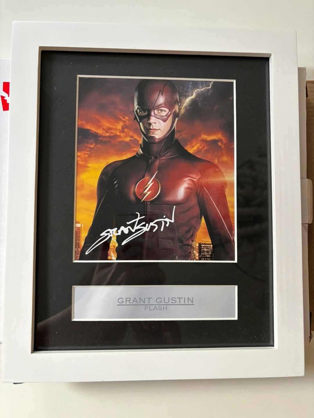 The Flash - Grant Gustin signed framed photo size 8 x 10. Purchased from Amazon. The photo was not signed in person but fans of The Flash would probably like this for Christmas. It’s in perfect shape and comes with a box.