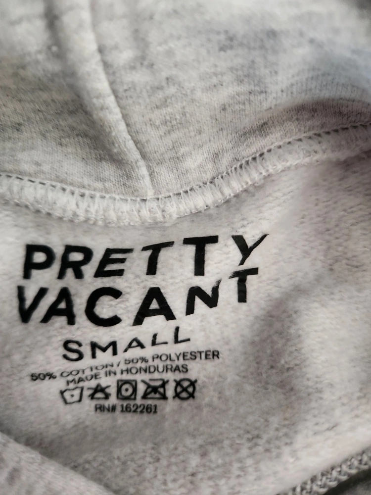 1000+Grey hoodie with a floral graphic and a Pretty Vacant logo. Size Small. * Cash Only * * No E-transfers * * Pickup Only * * Serious Offers Only *