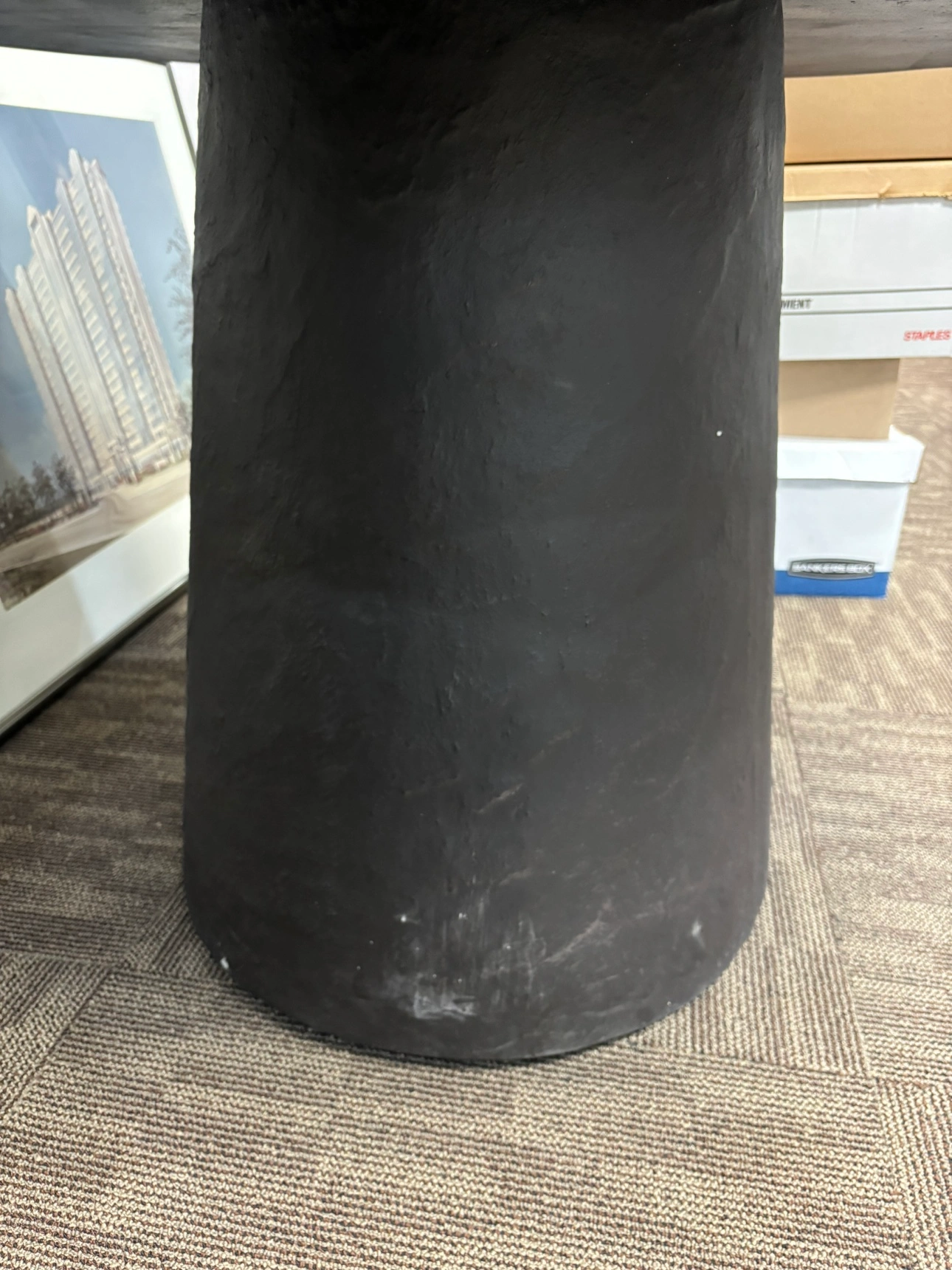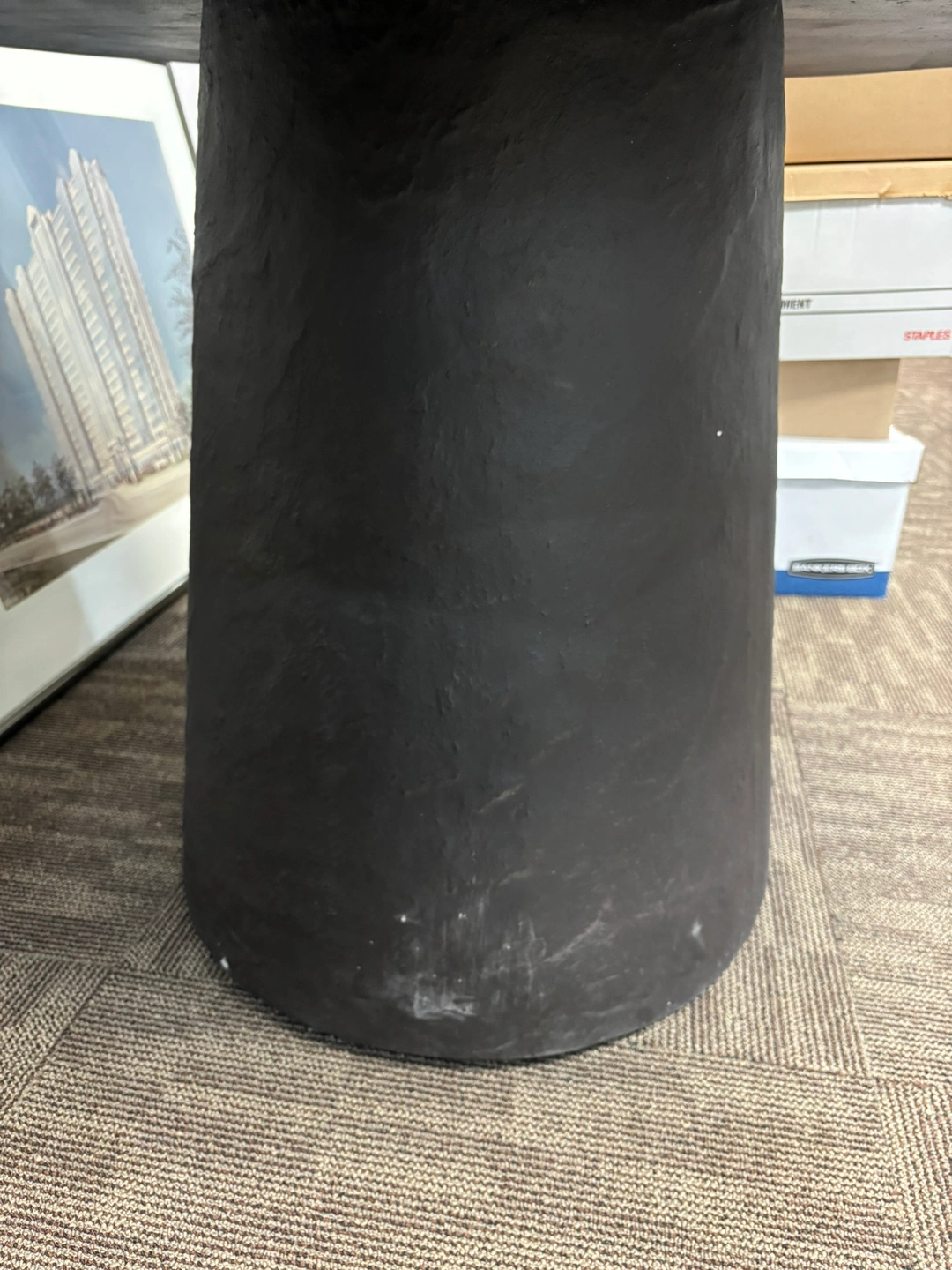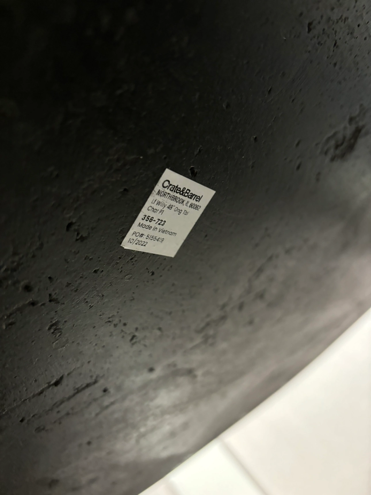 309Round dining table. Black slate top. Pedestal base. From Crate and Barrel, currently listed for 1,300. Some small chips and scuff, but otherwise in great condition. Pickup only.
