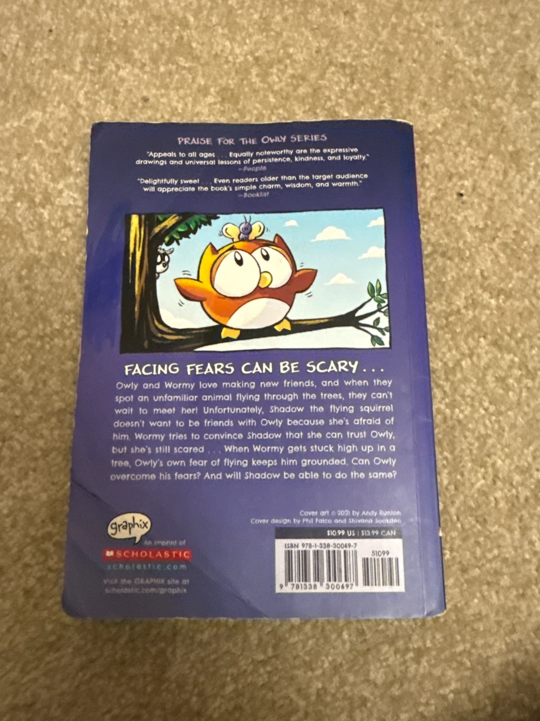Selling the graphic novel Owly: Flying Lessons by Andy Runton! It's part of the Owly series and is a sweet story about friendship and overcoming fears