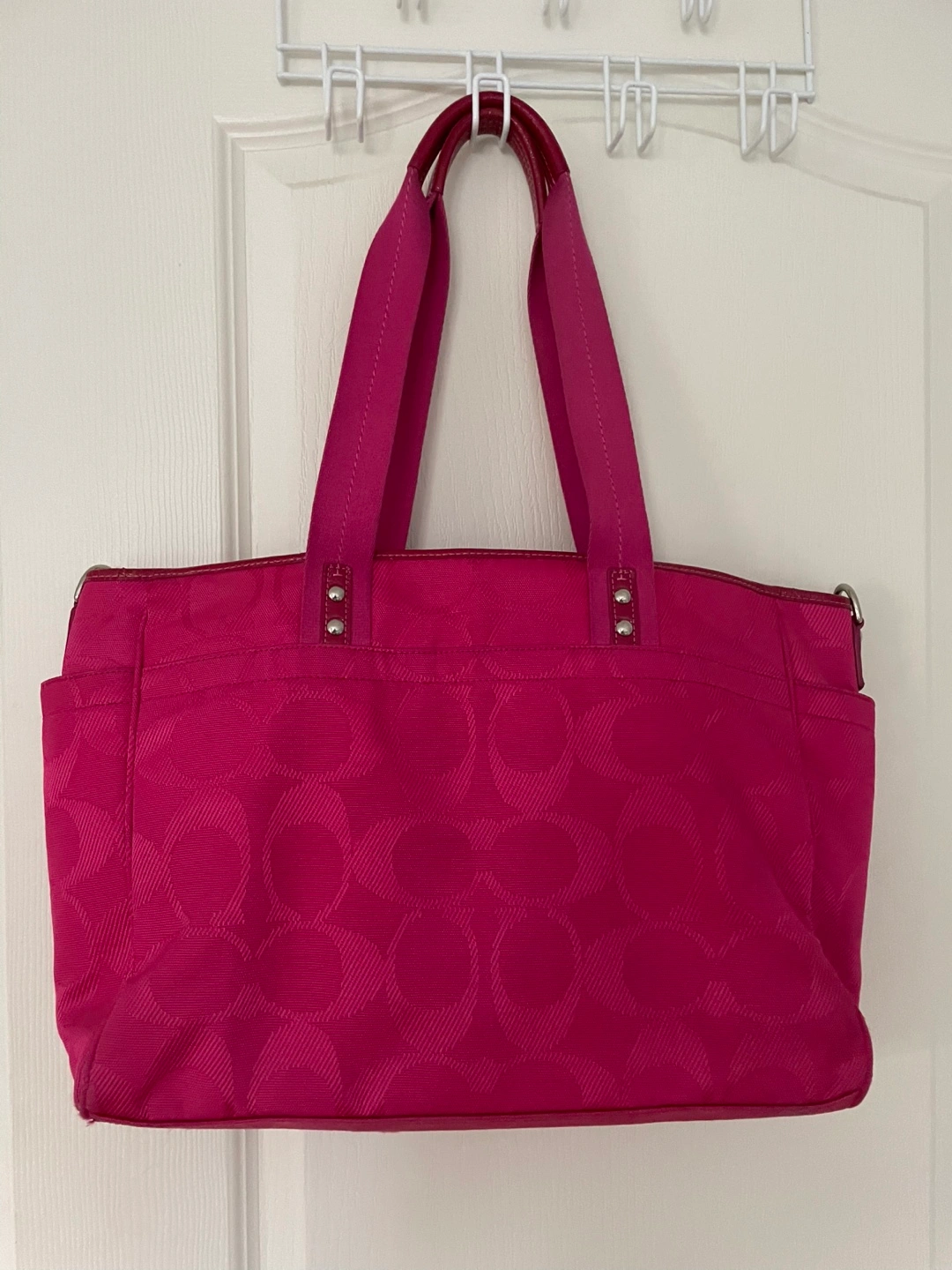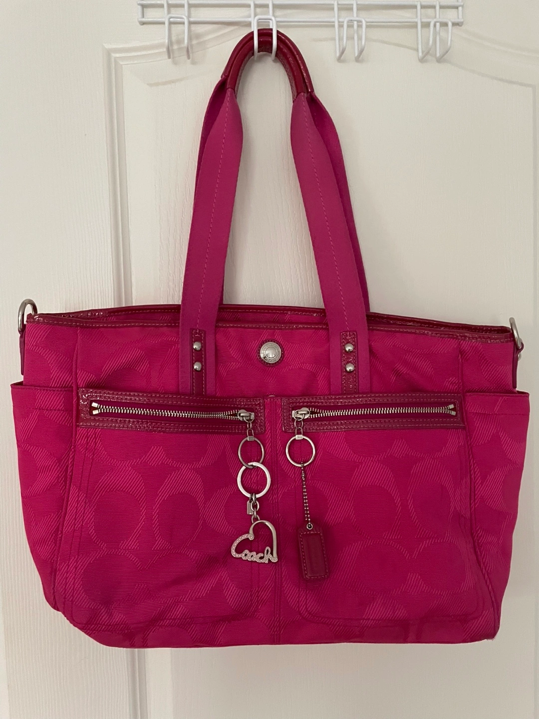 Pink Coach weekender/travel bag. (Can also be used as a diaper bag:)