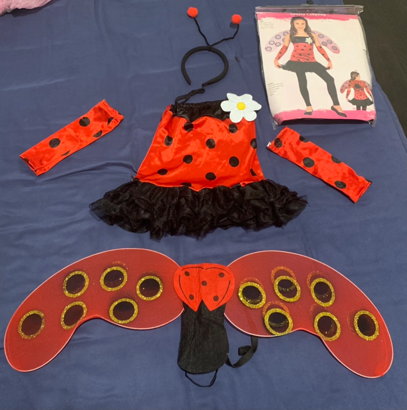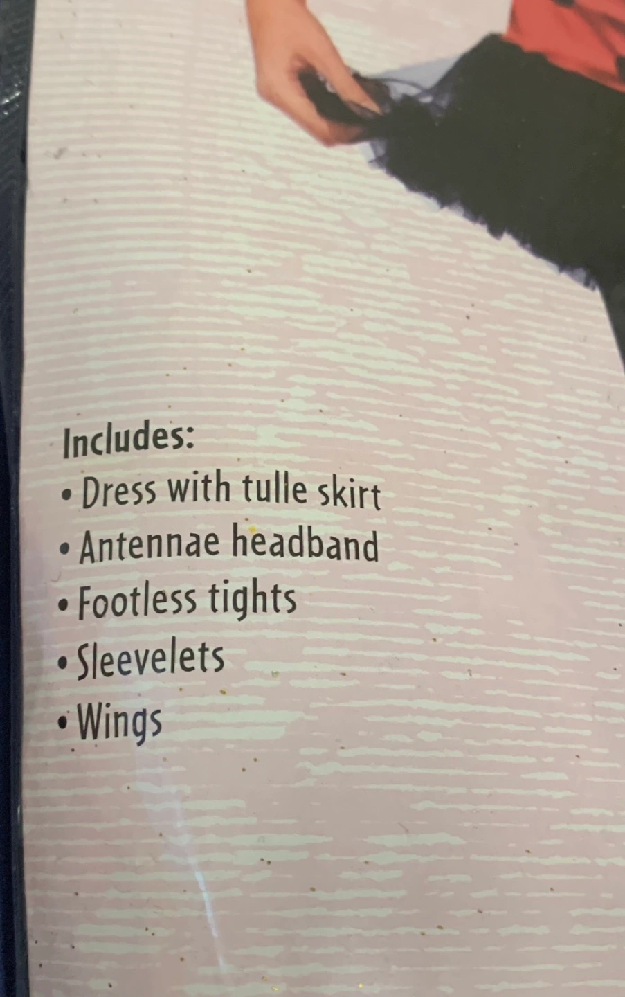 242Includes dress with flower, antennae headband, beautiful matching wings, arm sleevelets and footless tights Girl: Size 4-6.