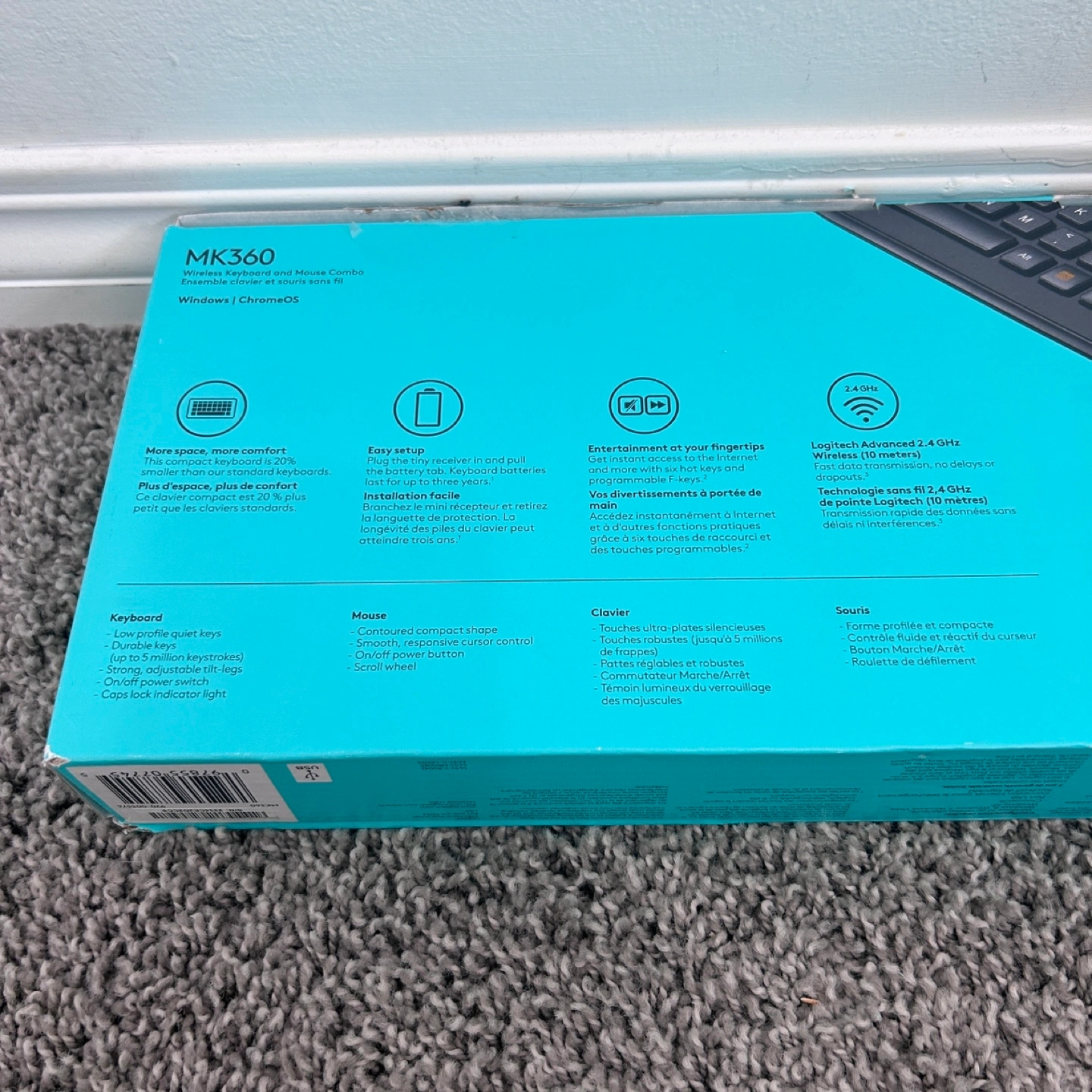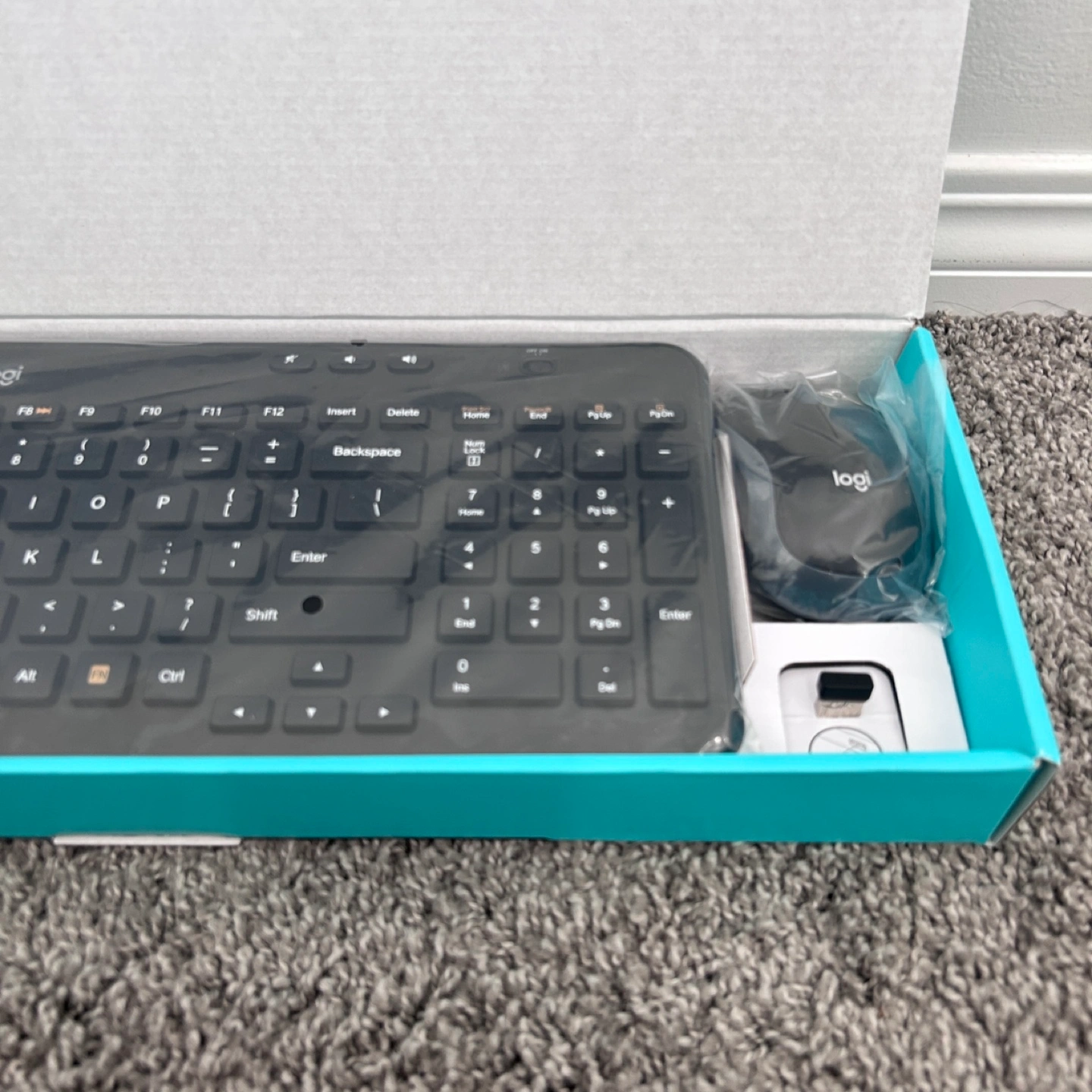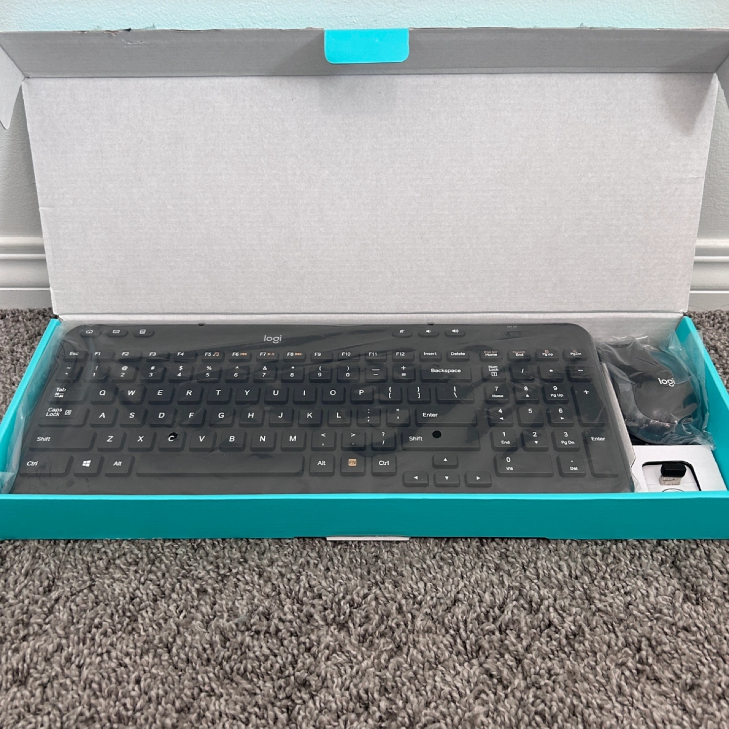Wireless keyboard and mouse combo. Includes a USB receiver. Brand new in box.