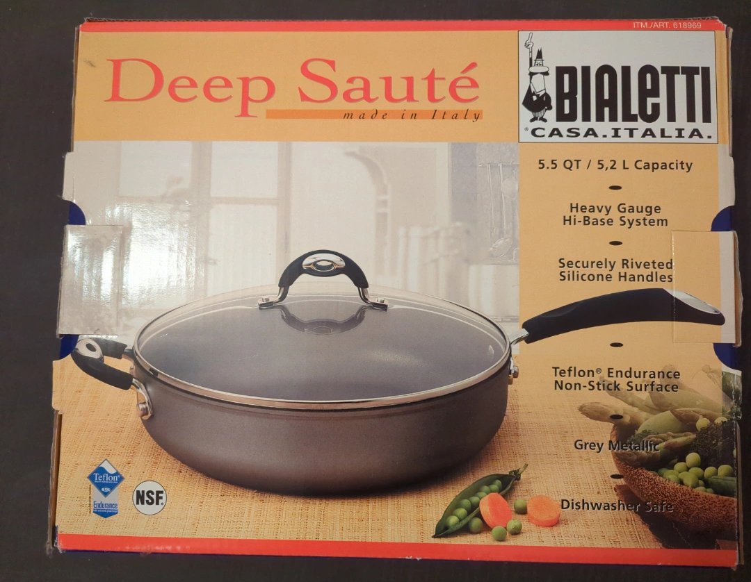 Bialetti Deep Sauté Pan 5.5 QT/5.2 L Capacity Made in Italy