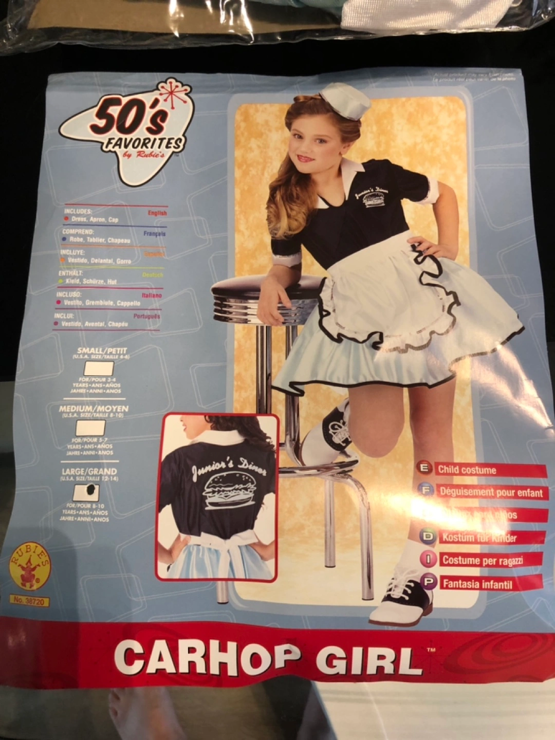 50's Favorites Carhop Girl costume. Includes dress, apron, cap. Size medium - US size 8-10.