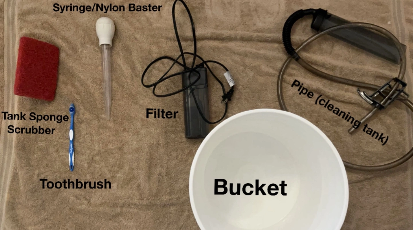 Tank, filter, lighting, turtle food, water treatment, and cleaning supplies (dm for more info - prince negotiable).