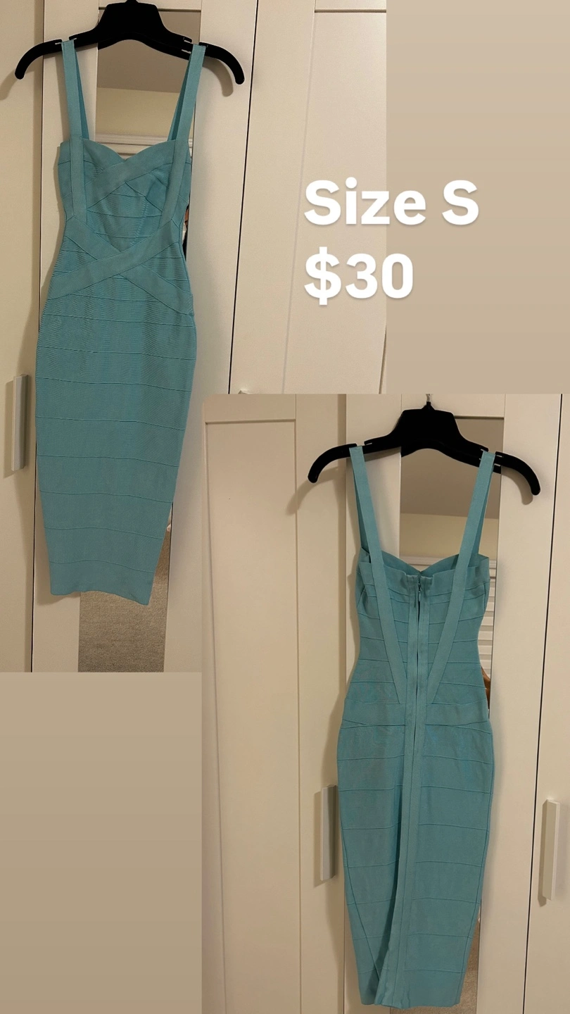 Blue bandage dress, size small. Strapless with a zipper in the back.