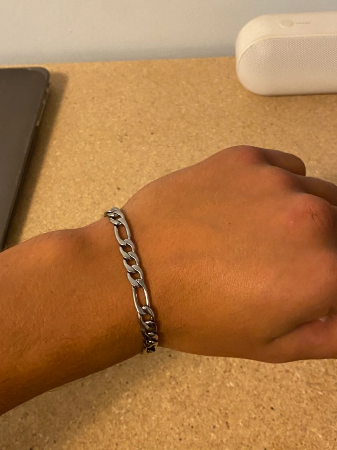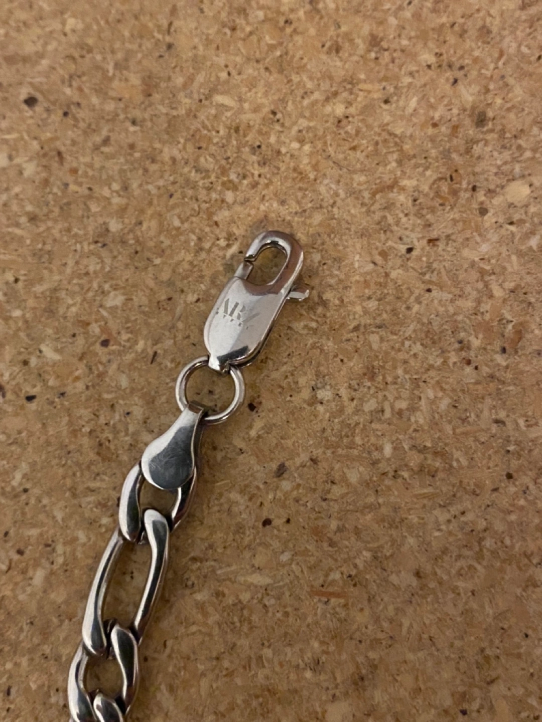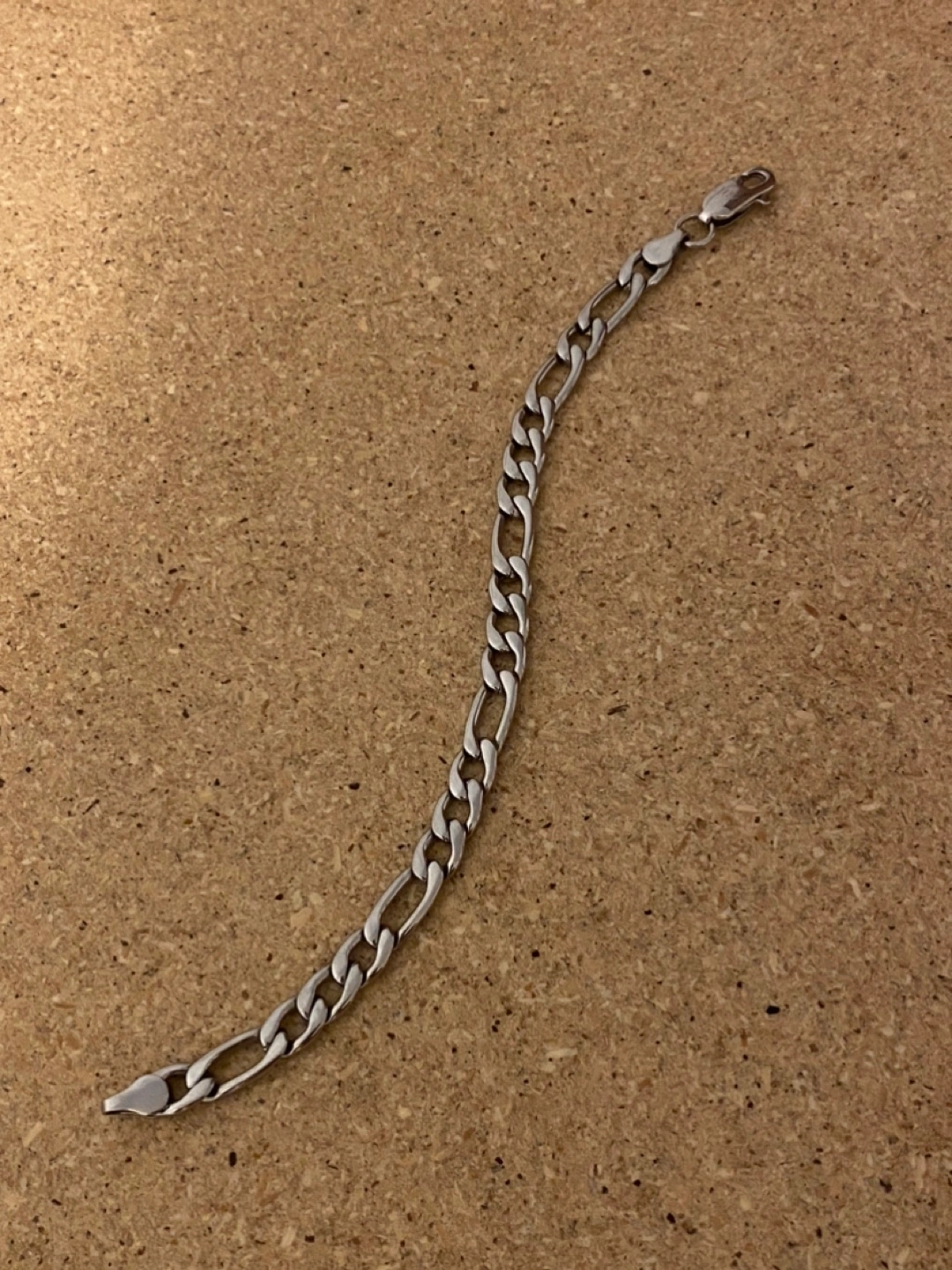 128Silver curb chain bracelet. Has a lobster clasp closure. Stainless steel base.
