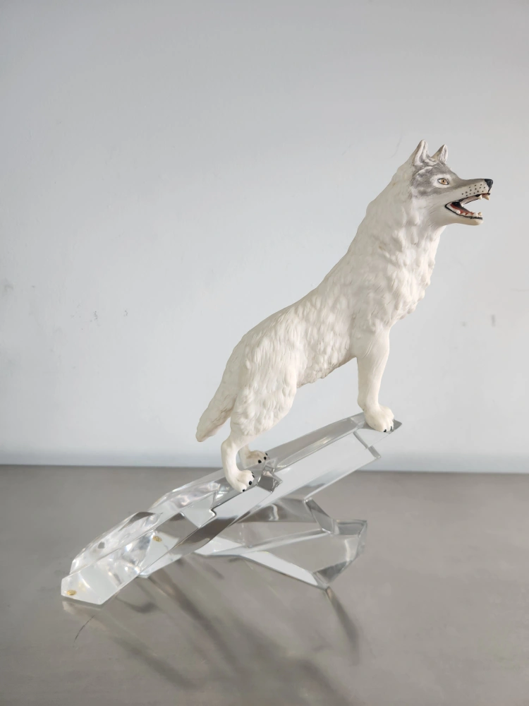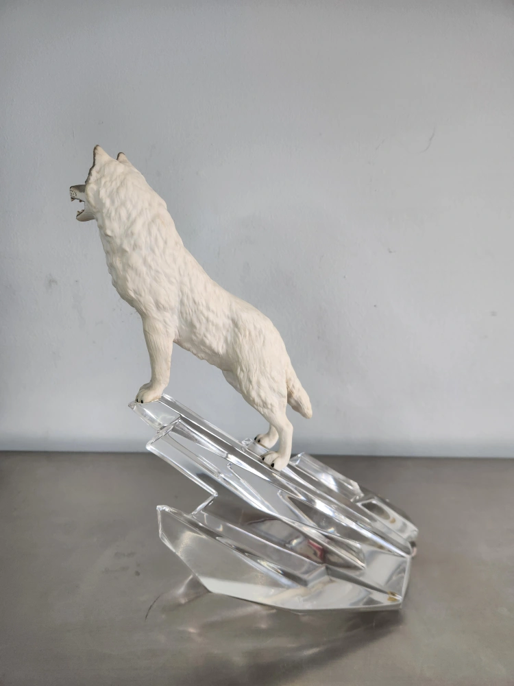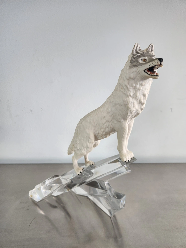 132Crystal figurine of a wolf standing on a crystal base. Made in Germany.