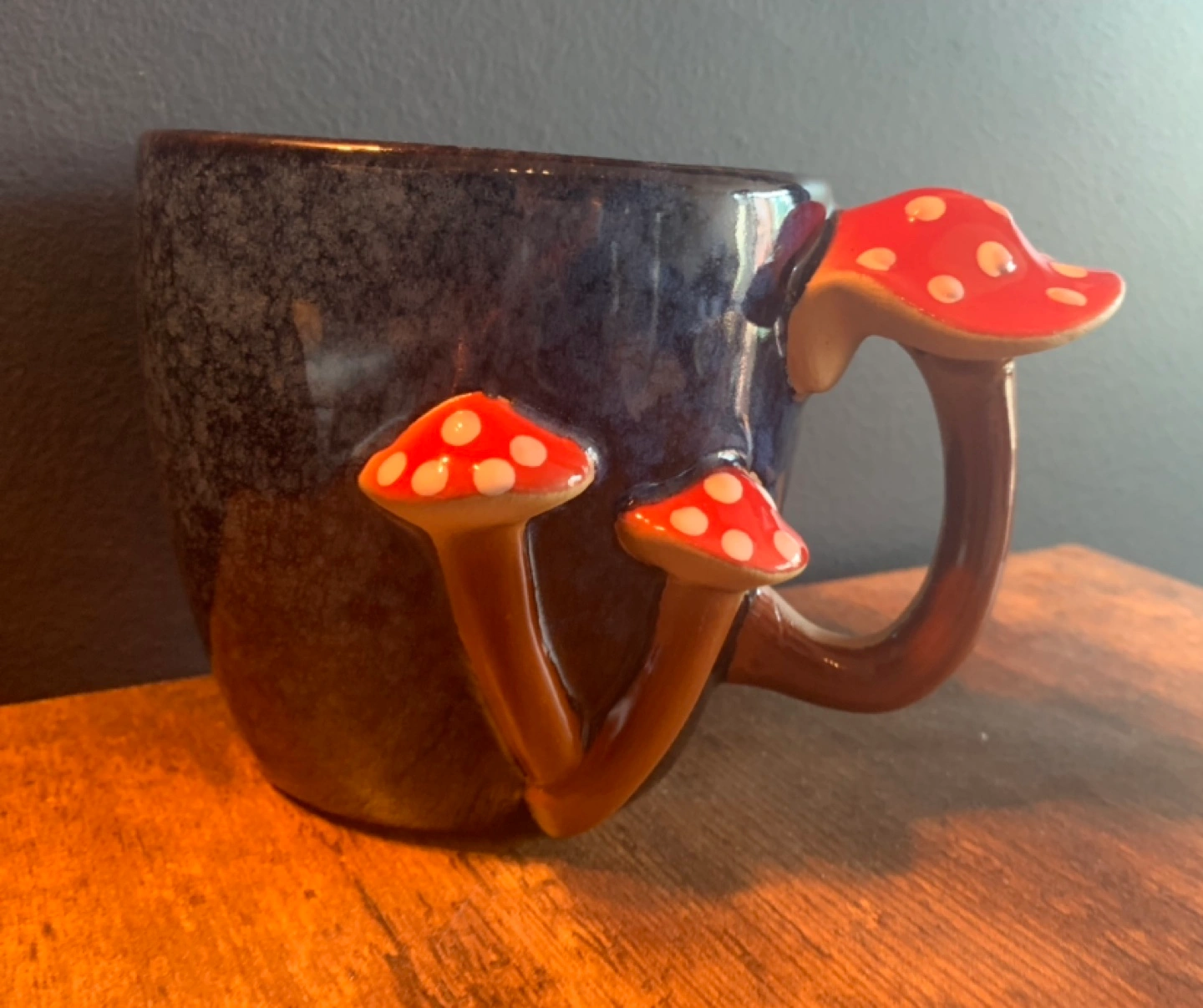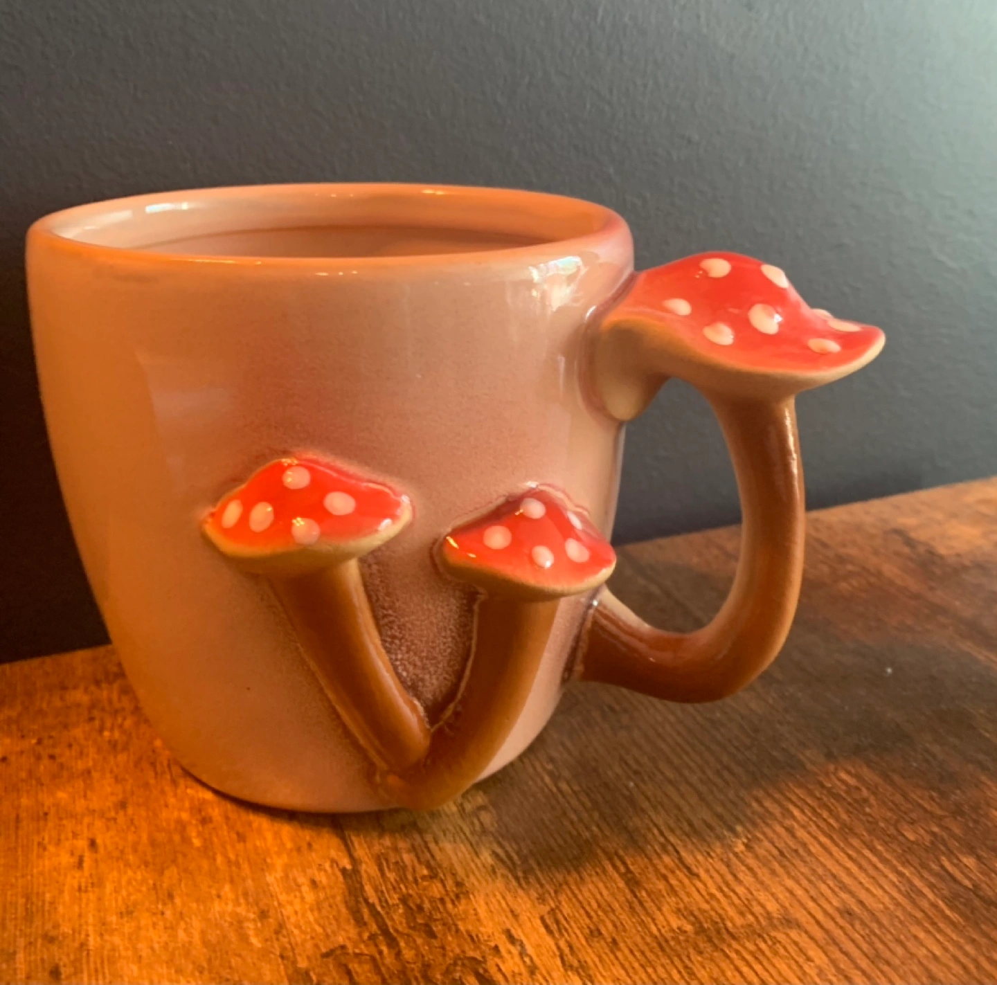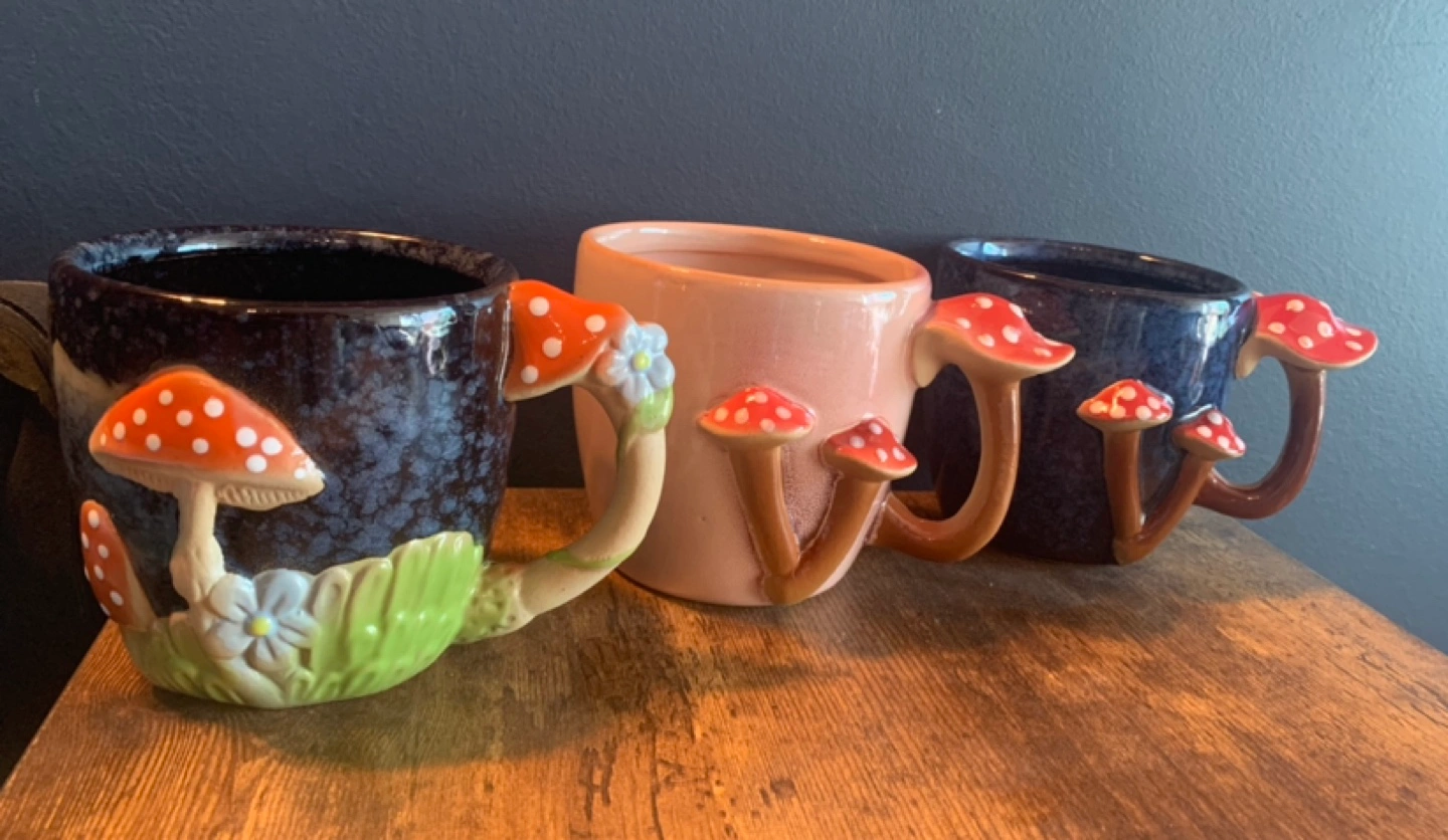 3 large ceramic mushroom mugs. Bought as a gift and then found a set of vintage Merry Mushroom ones that my friend would appreciate more.