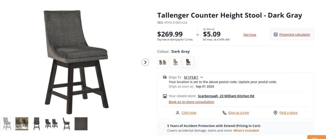 a set of two Ashley design barstools, brand new, assembled and never used, cost $610 - selling both for $120.