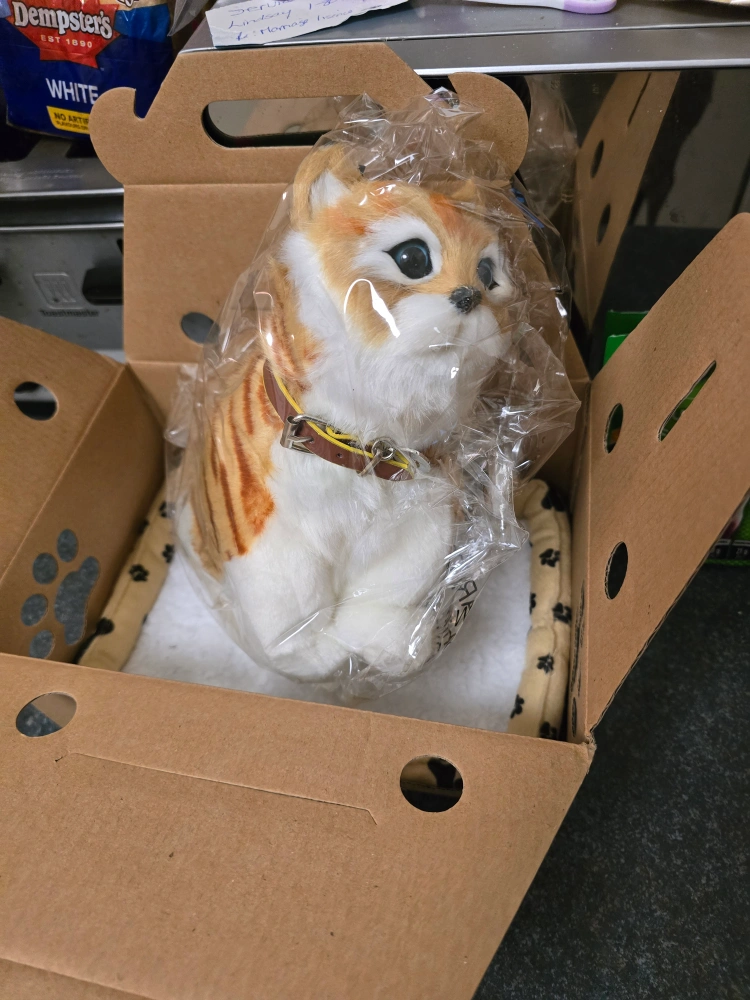 Interactive plush cat toy. New in box. With Christmas fast approaching, I would like to offer this item for free to a child for Christmas that can't afford much.