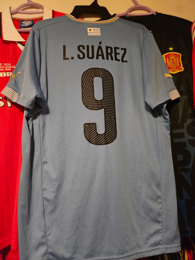 Luis Suarez number 9 Uruguay 2014 world cup soccer jersey in size XL in like new condition.