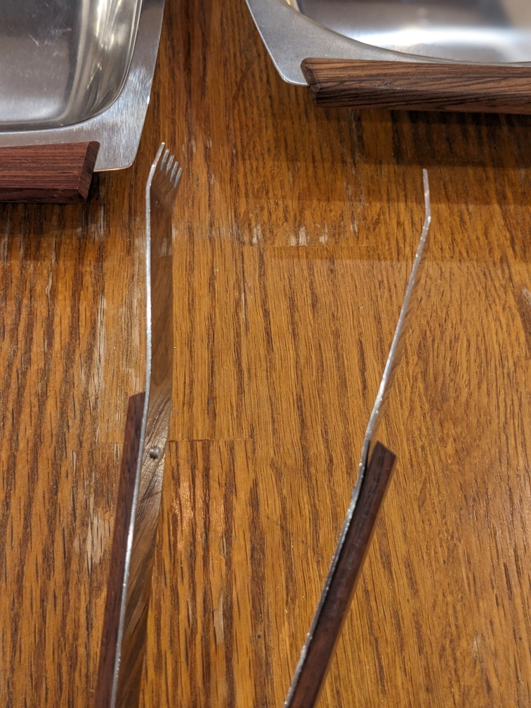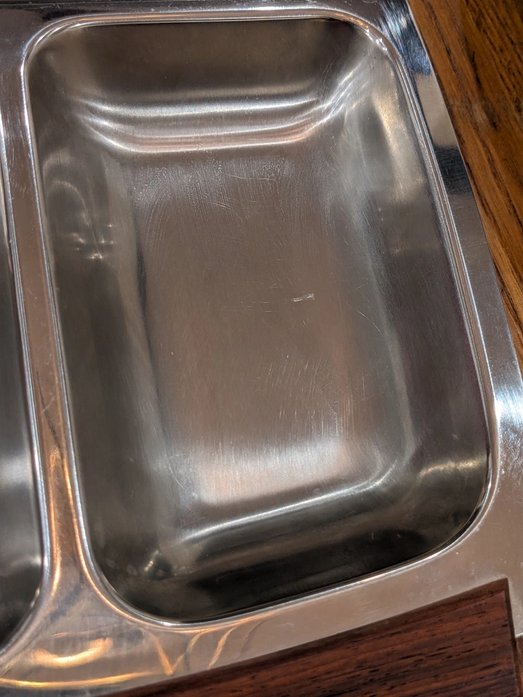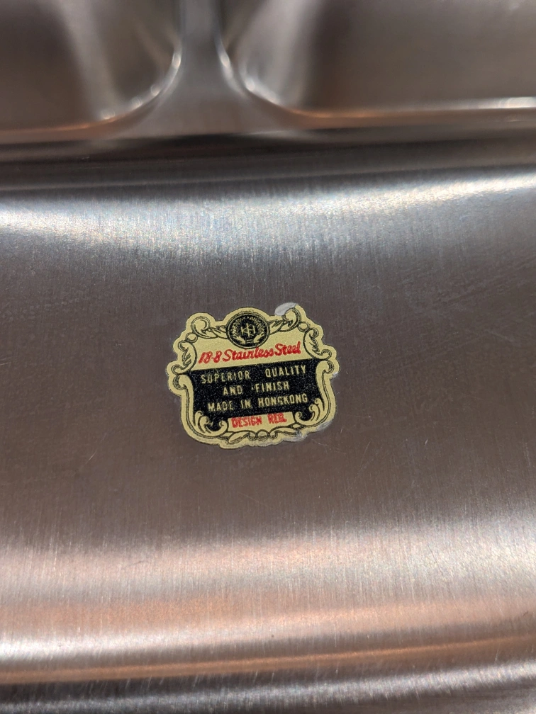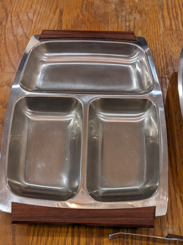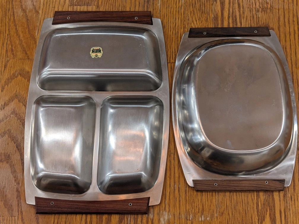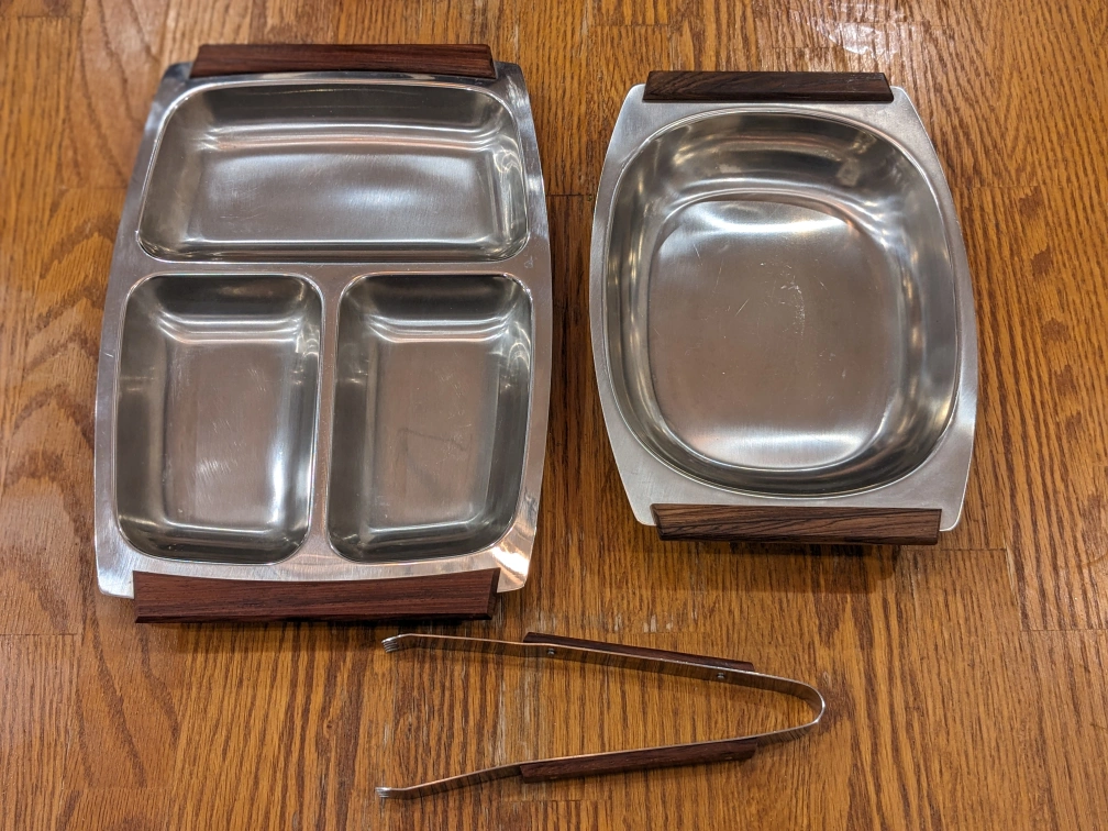 Vintage MCM KIH stainless steel 18-8 serving trays with tongs