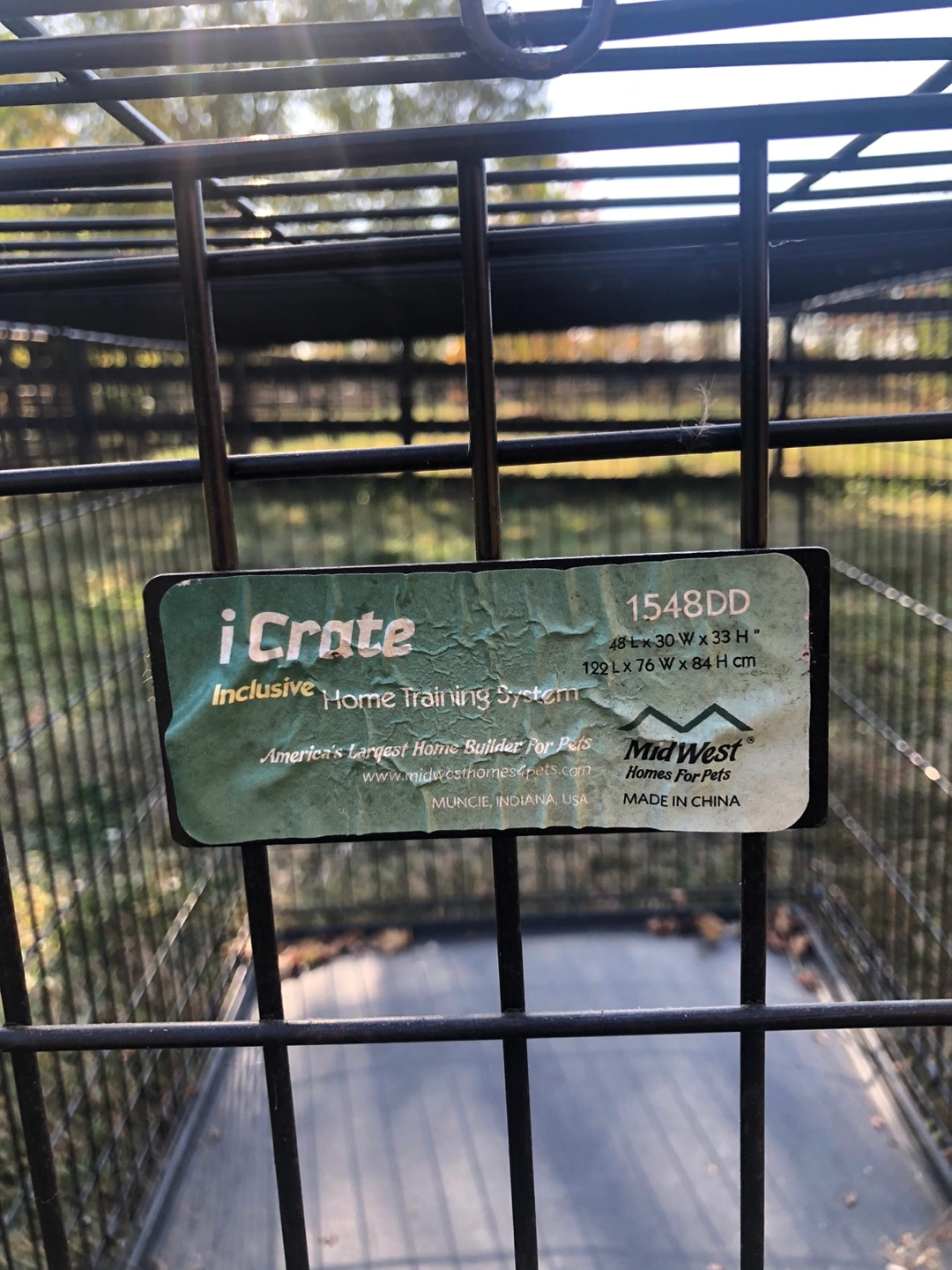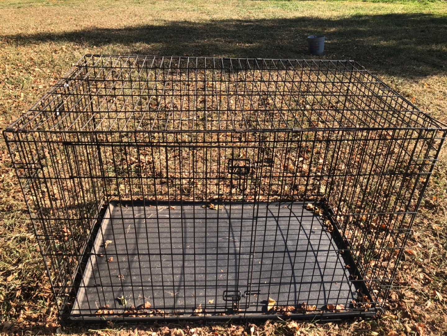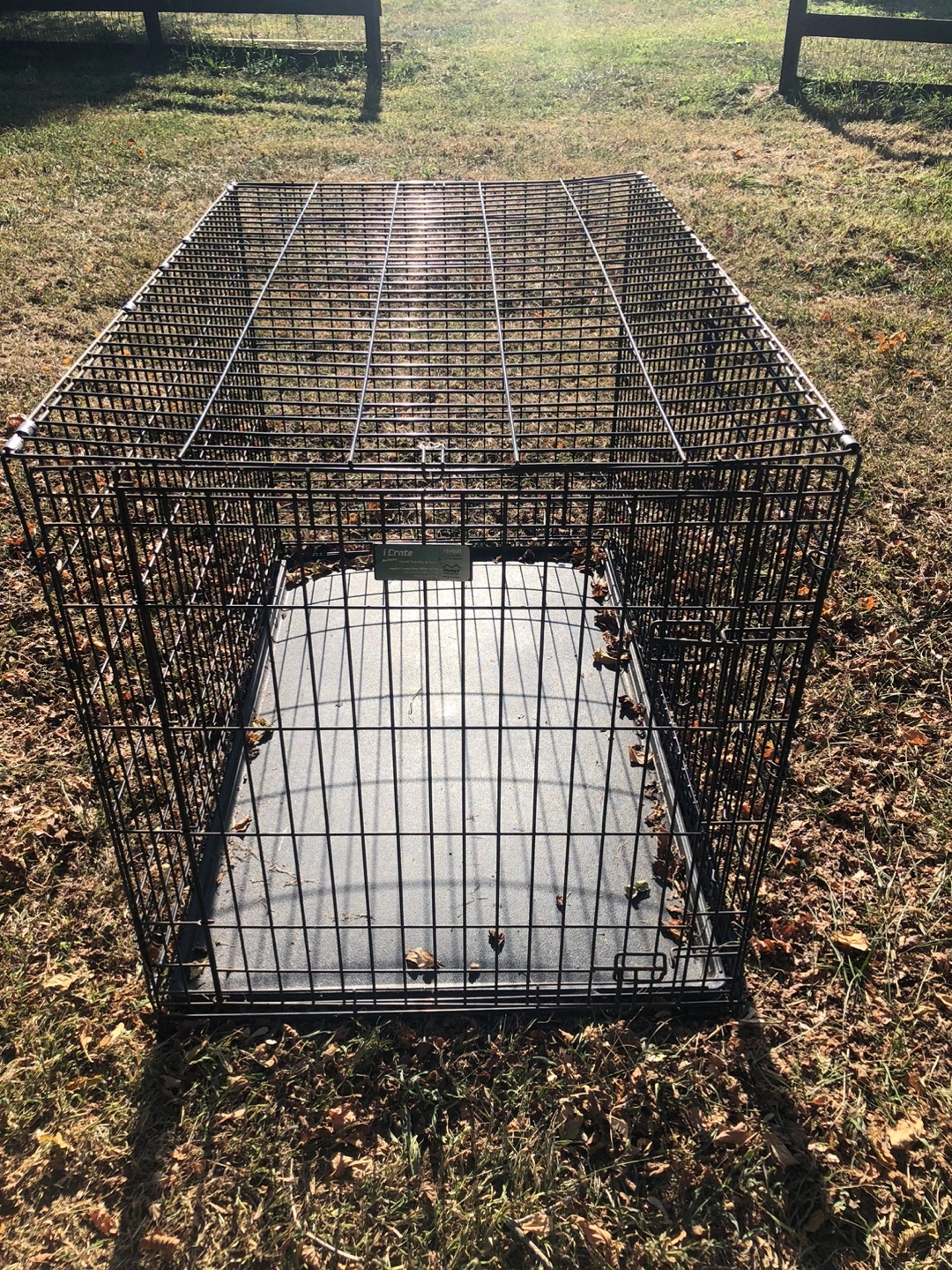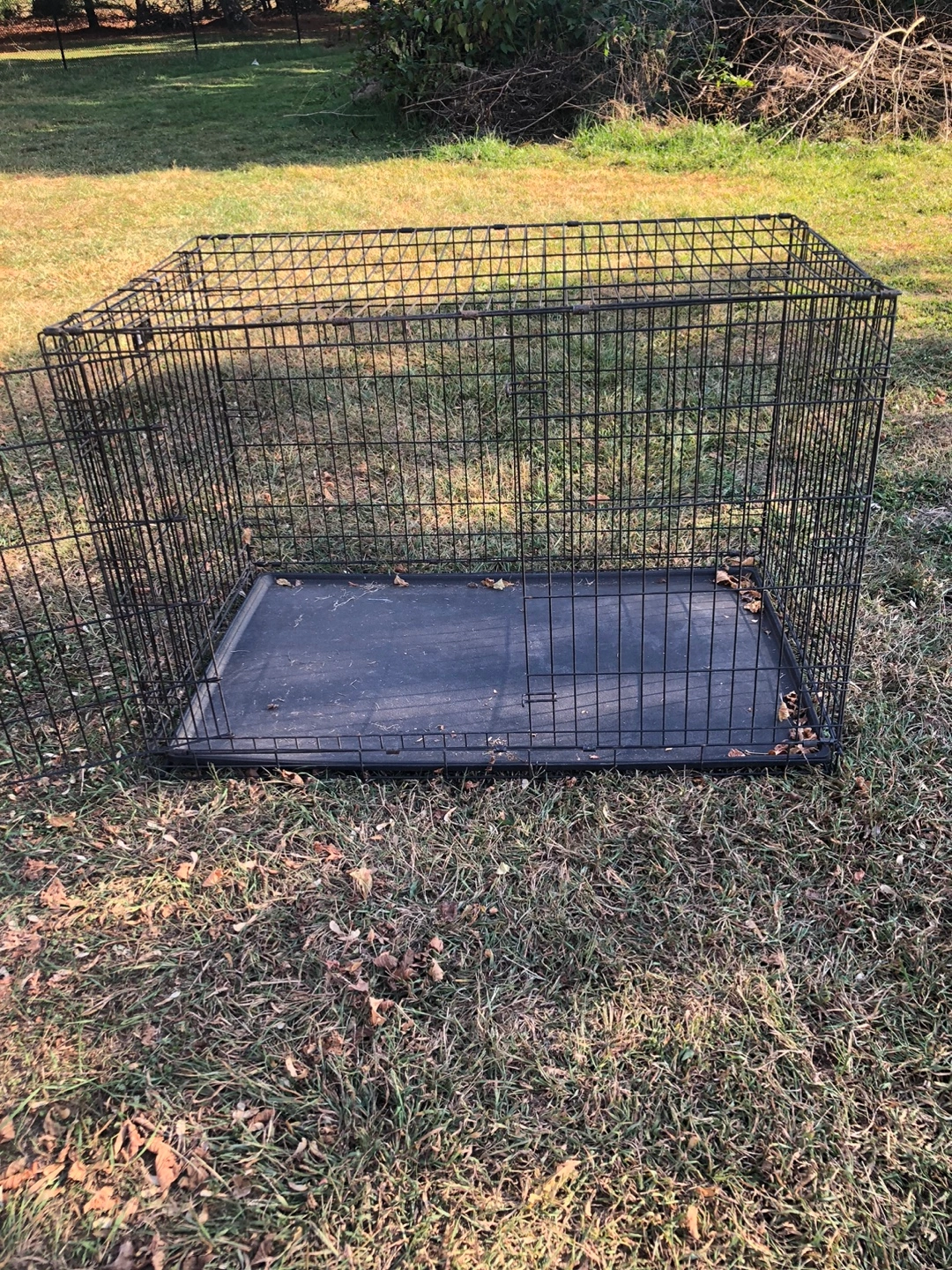 10Black metal dog crate with removable tray. Includes a double door for easy access.
