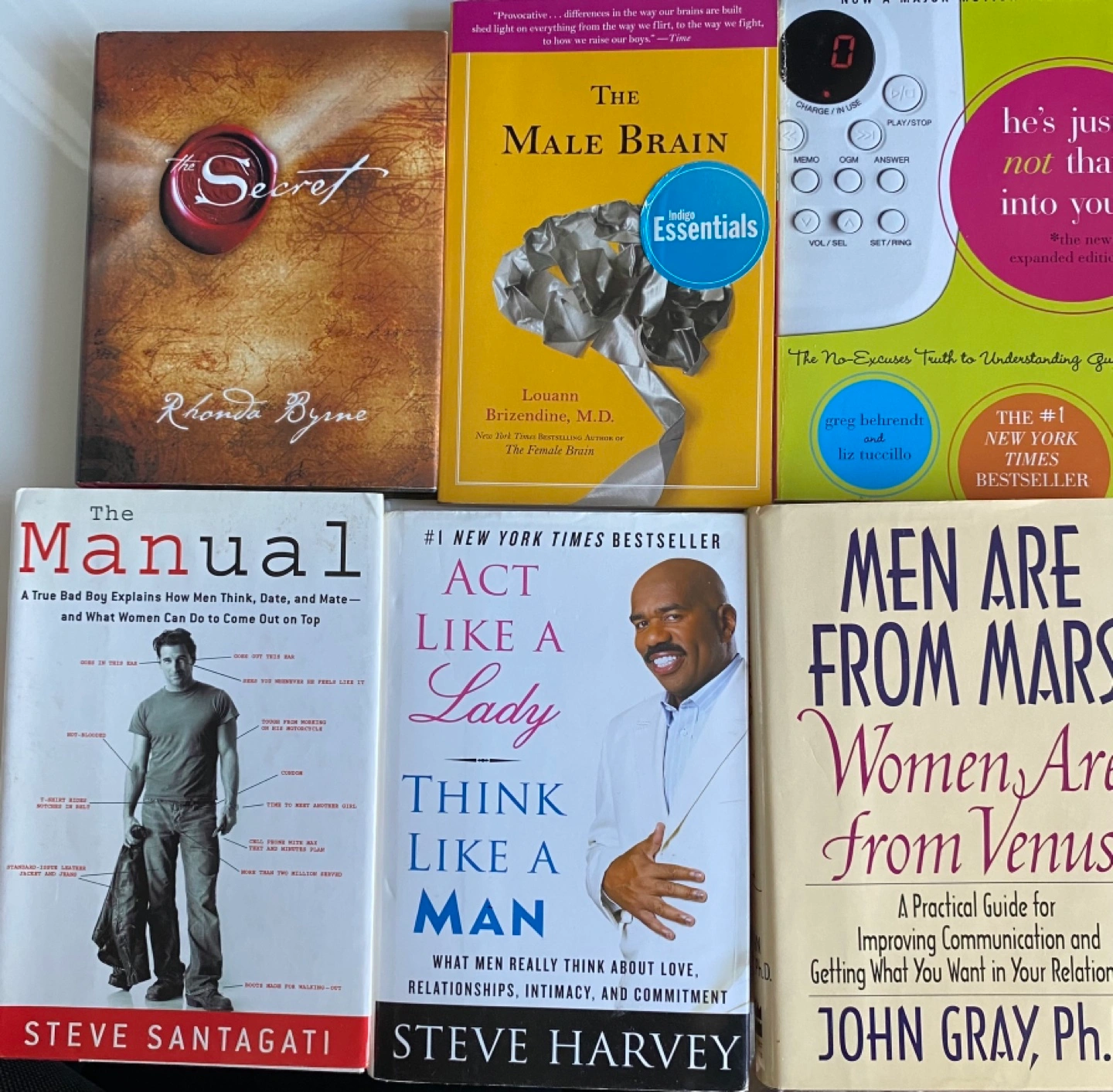 Titles: The Secret, the male brain, the manual, act like a lady, man are from mars, he is just not into you.