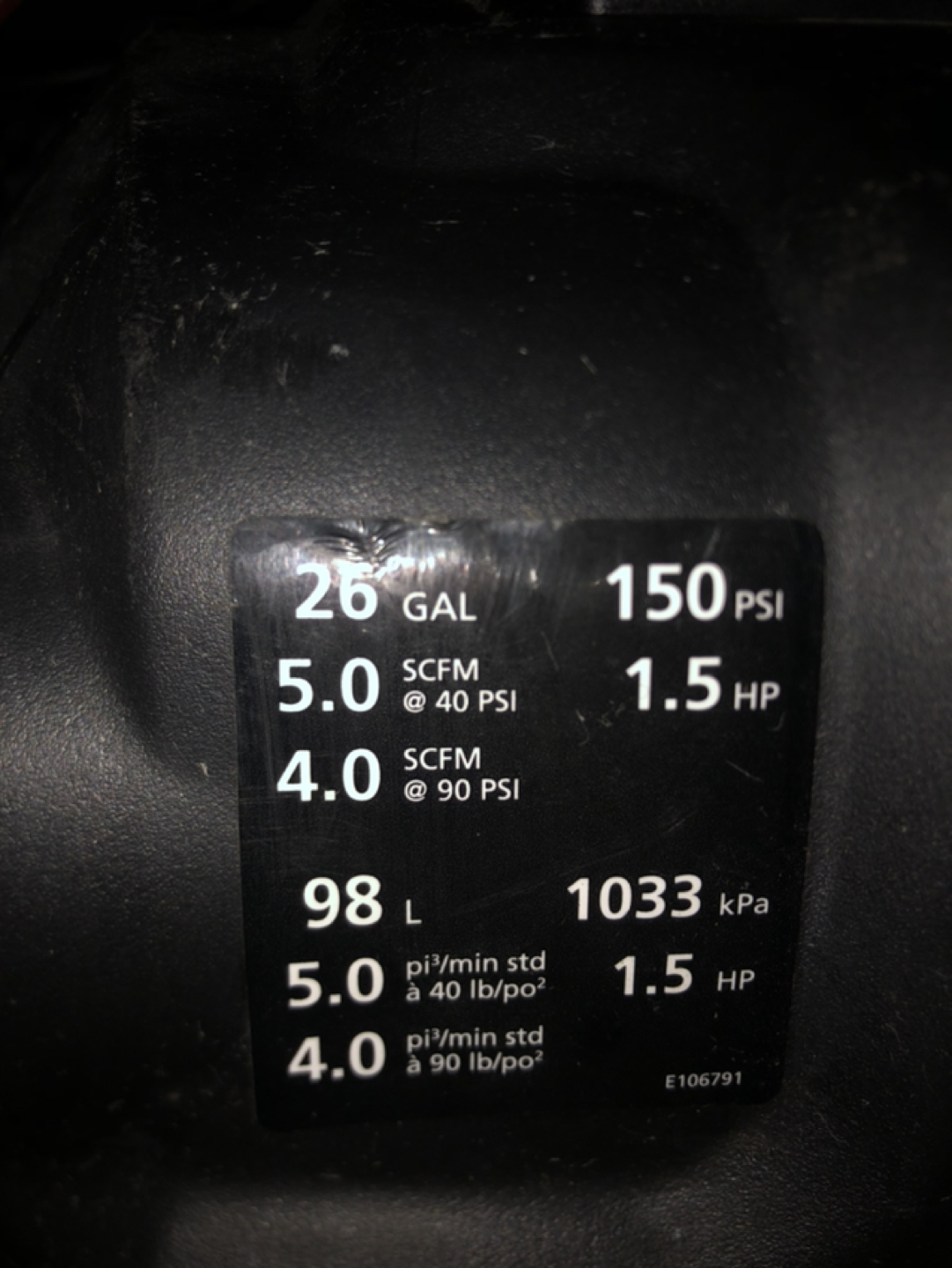 Husky 26 gallon air compressor in excellent condition ,maintenance free , no leaks , connecting couples,producing 150 psi . please text me 416-402-7666