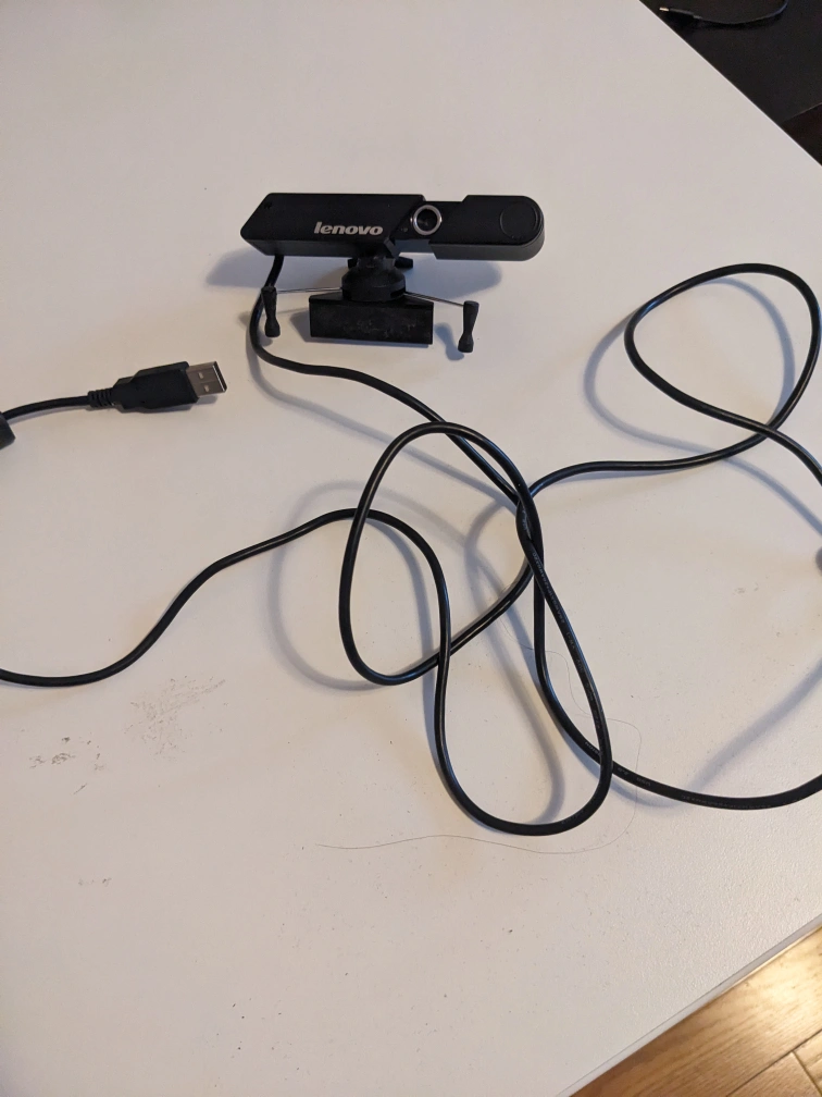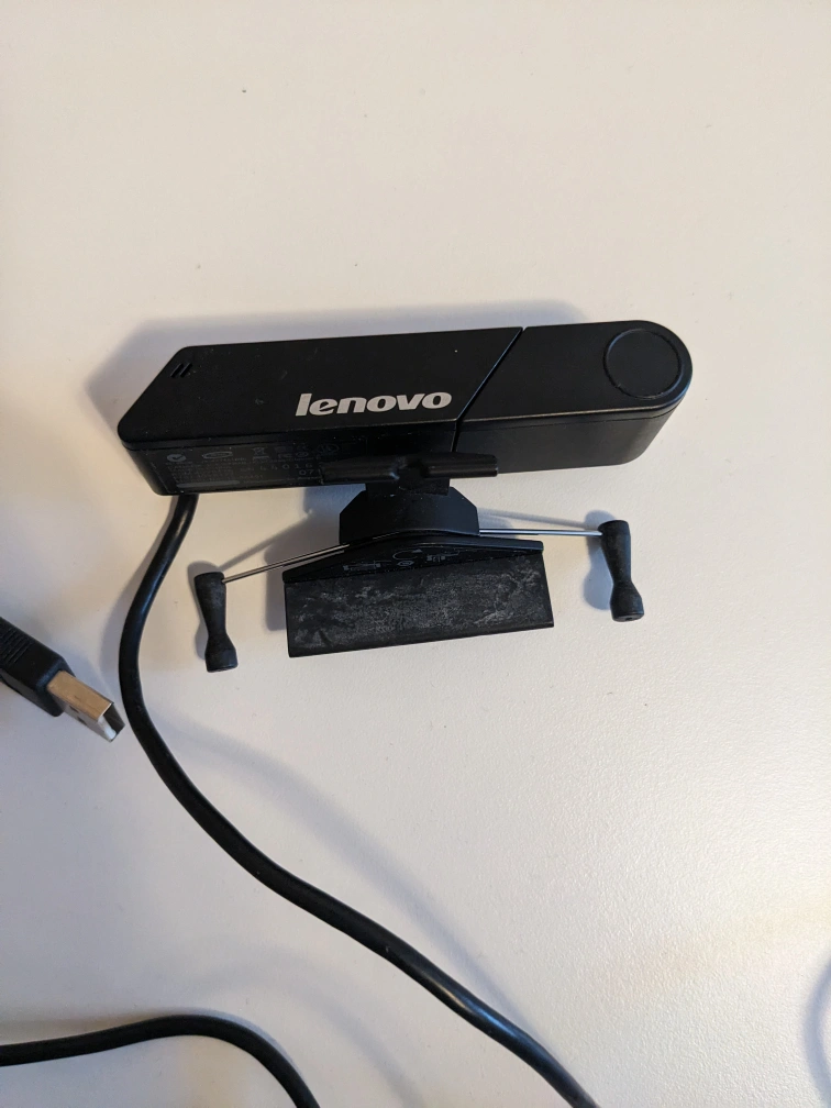 1000+Black webcam with USB cable and adjustable stand. Includes a privacy cover.