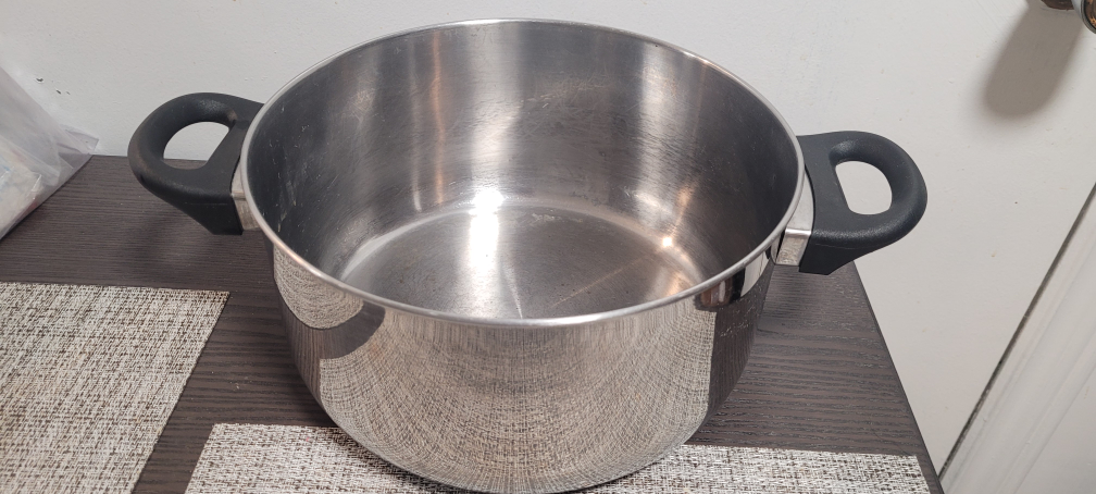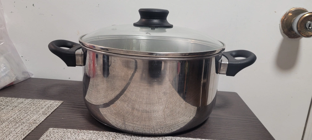 Great silver cooking pot with Glass Lid for all your stew, soup, and stock cooking needs. With Plastic Handles, perfect for cooking safely.
