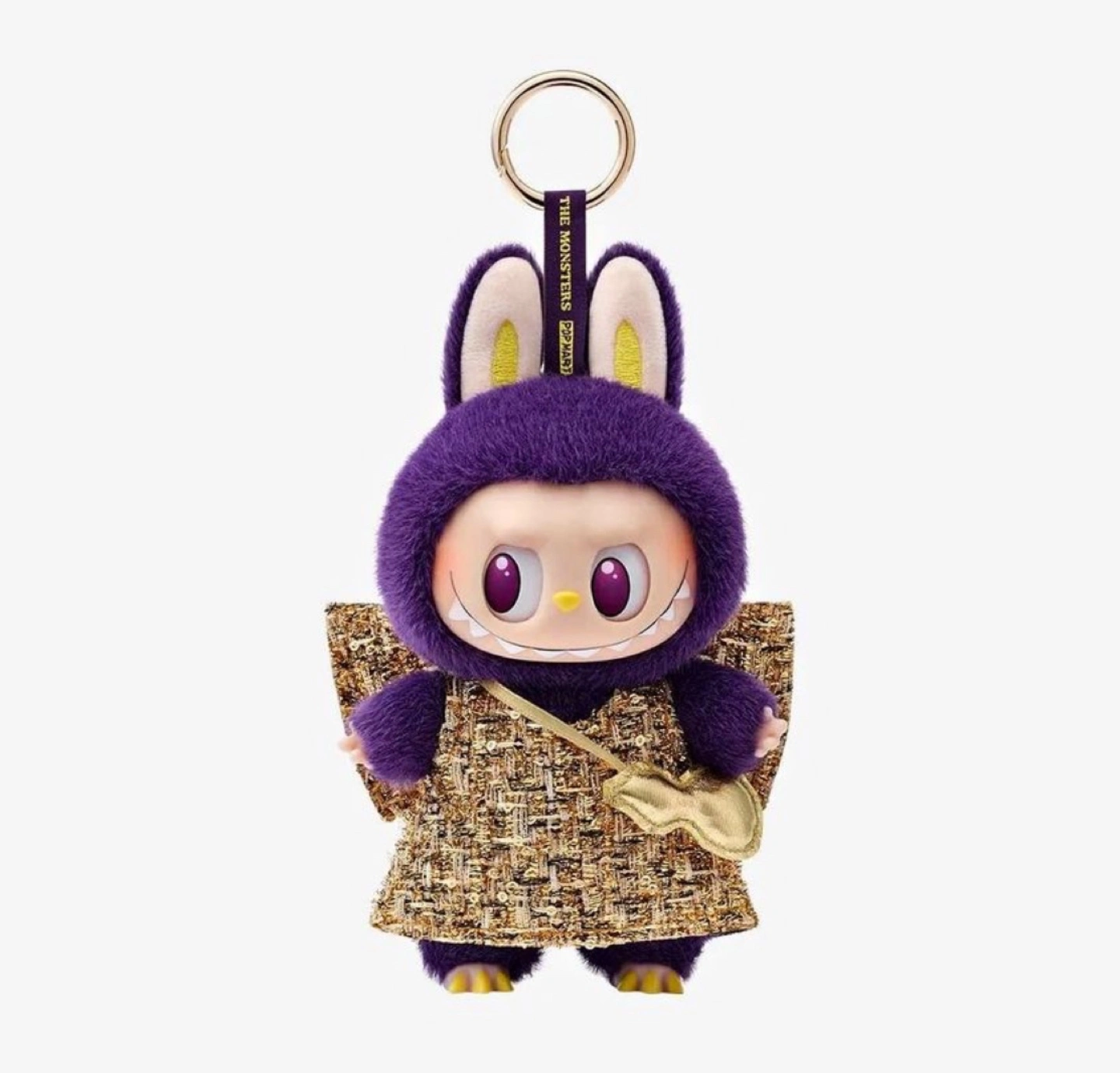 Purple plush keychain with gold wings and a small gold bag. Comes in a sealed box. Brand new.