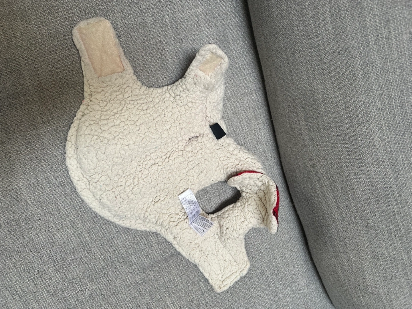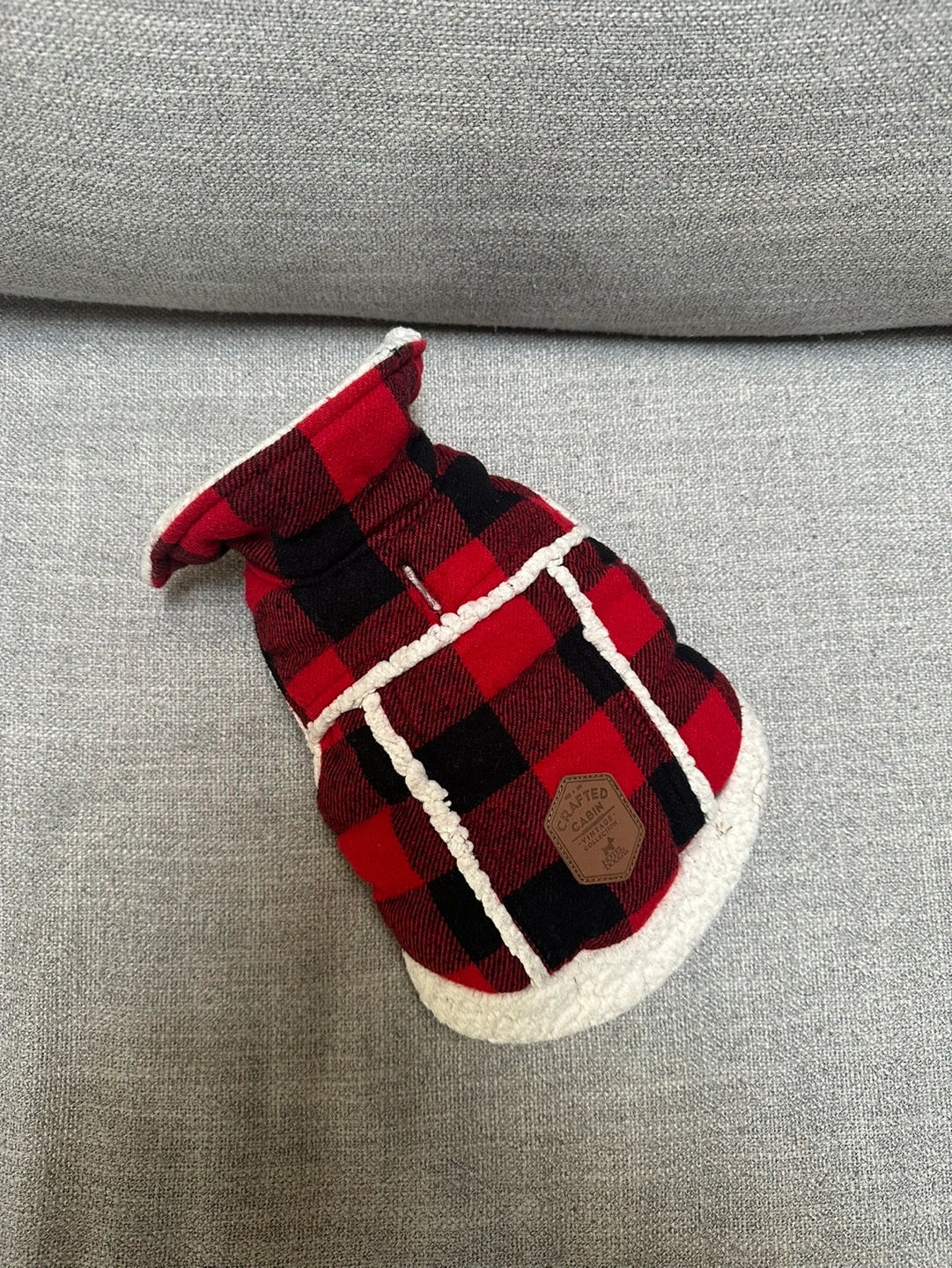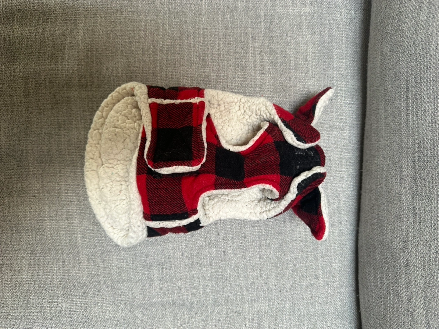 Red and black plaid dog vest with sherpa lining Adjustable with velcro closure Great condition Our puppy sadly outgrew it!!! Just washed :)