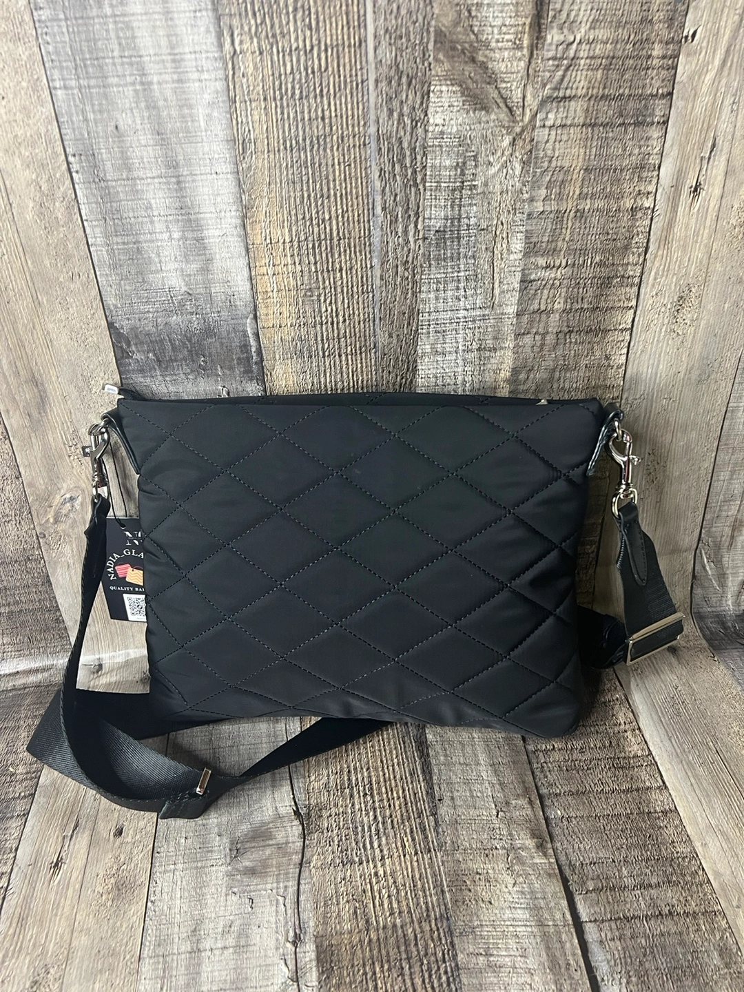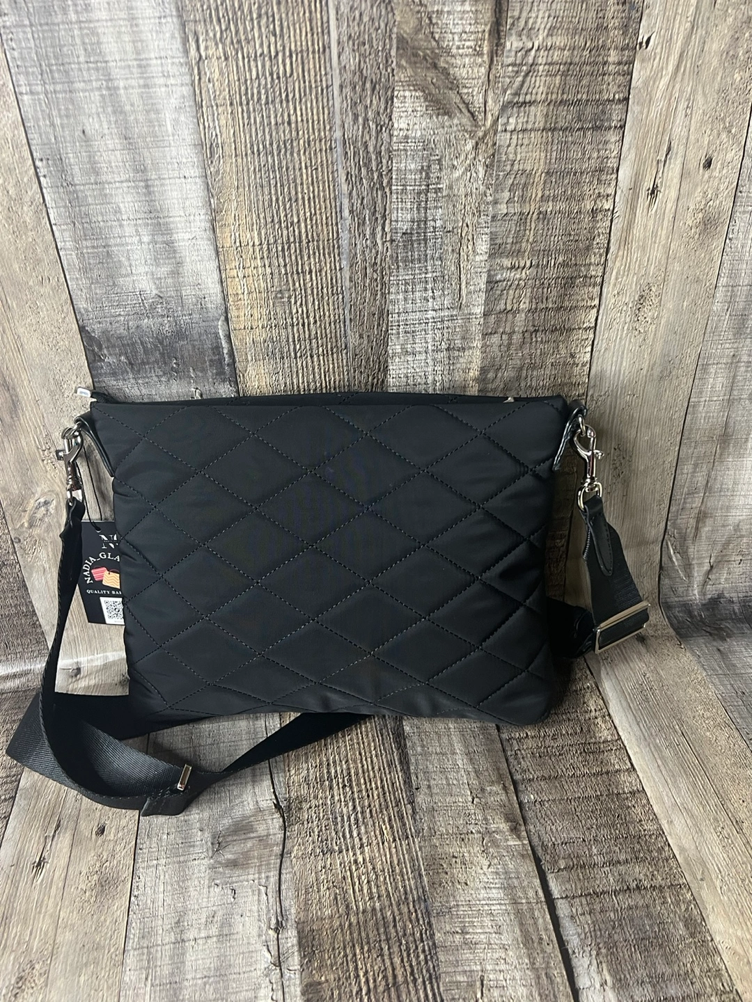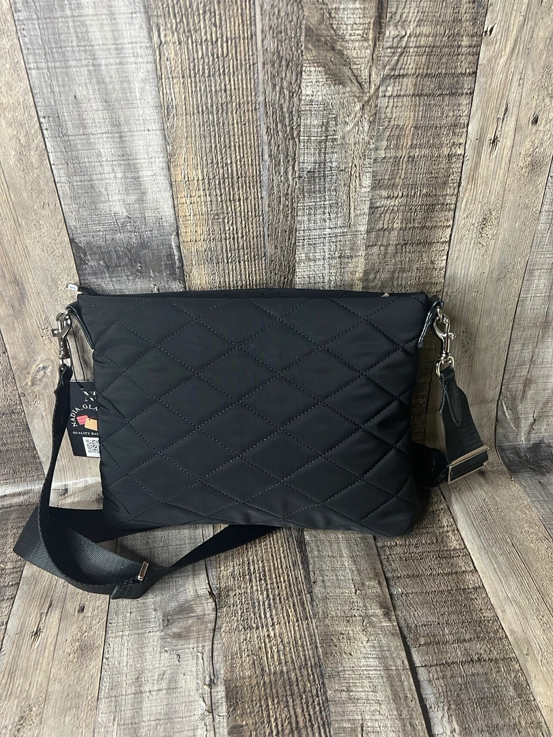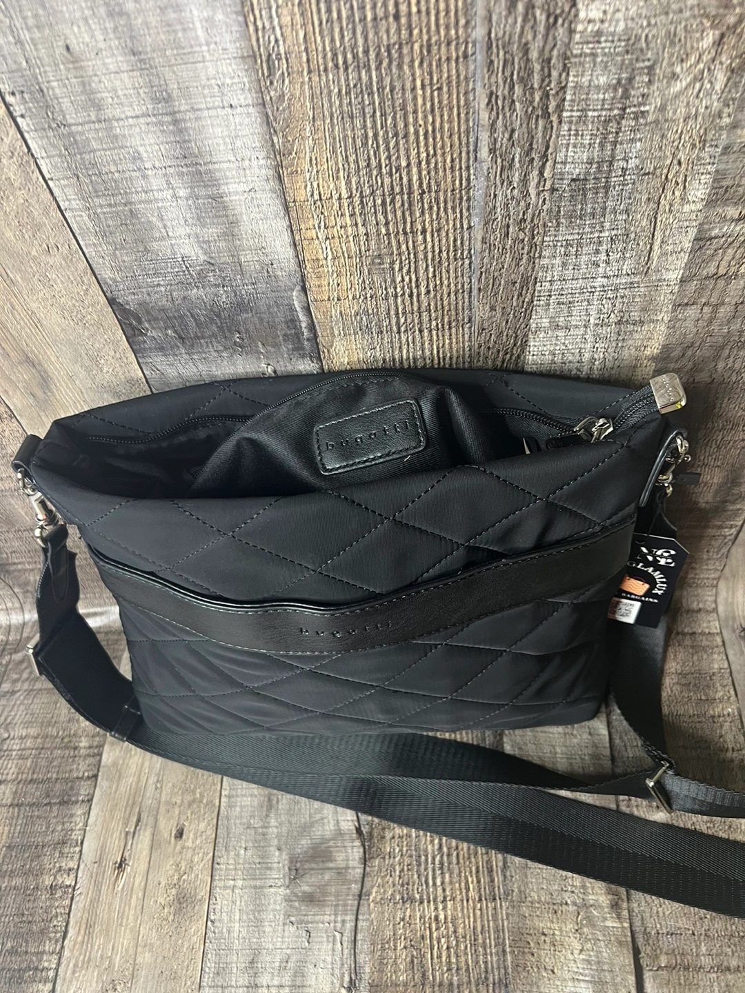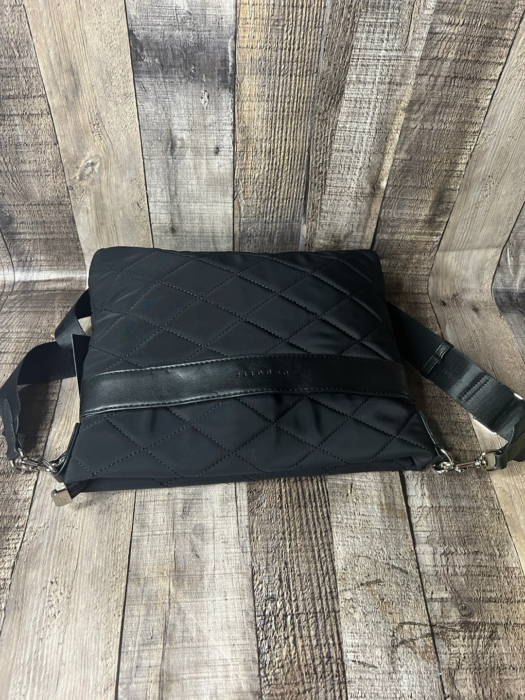 Bugatti Black quilted crossbody bag with adjustable strap and leather accents.