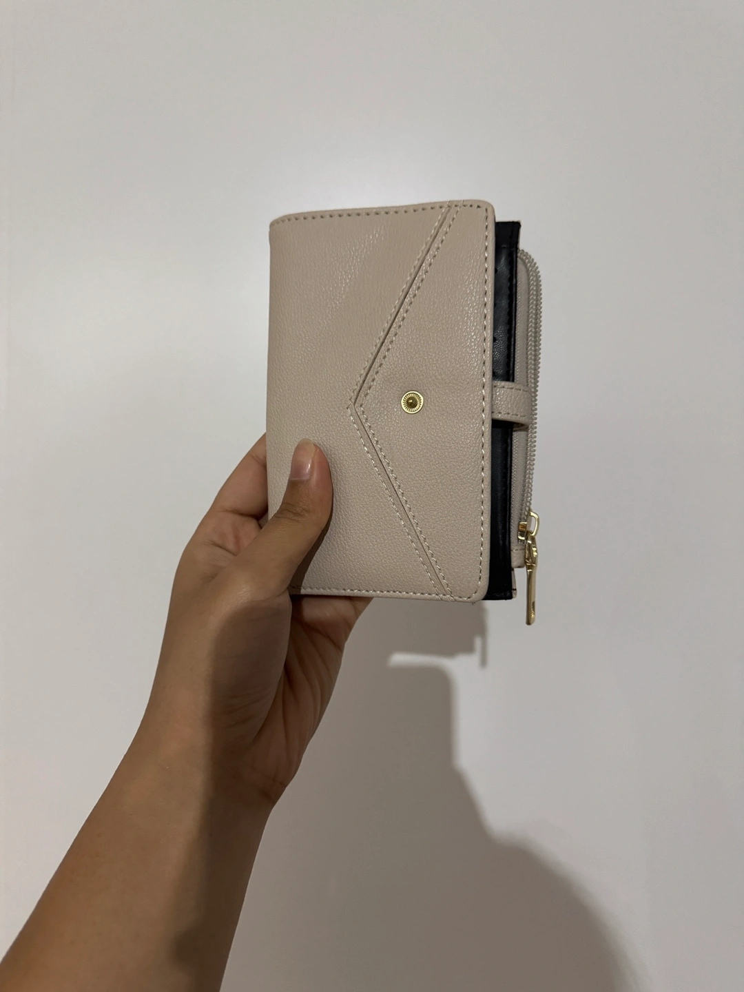 Small bifold wallet with a zippered coin pocket and a separate pocket for bills