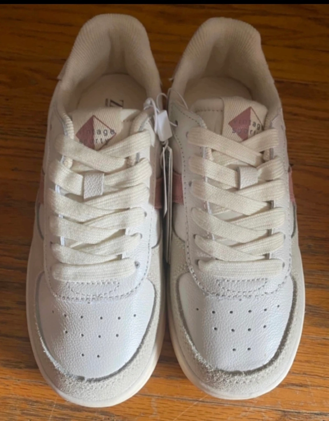 Zara White Sneakers with Pink Accents (Kids Size 34)