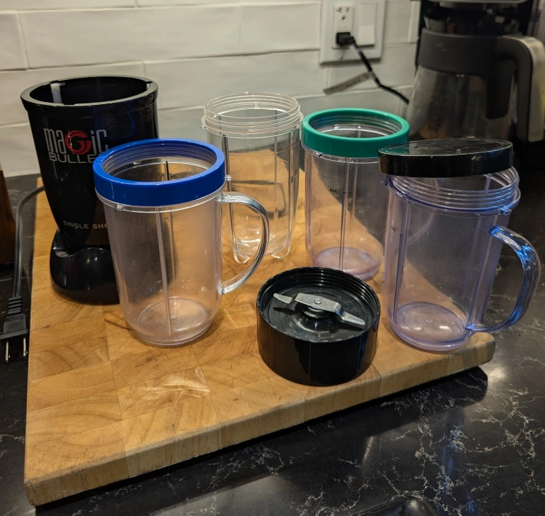 selling with 2 cups with handles, 2 tumblers, 2 coloured rims and a top for sealing. Perfect working condition. Pick up only.