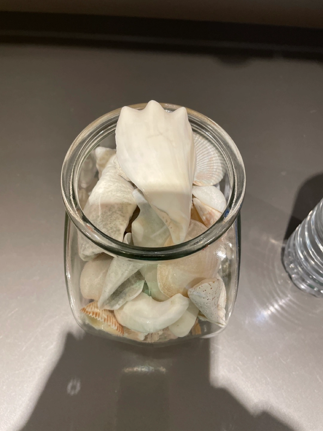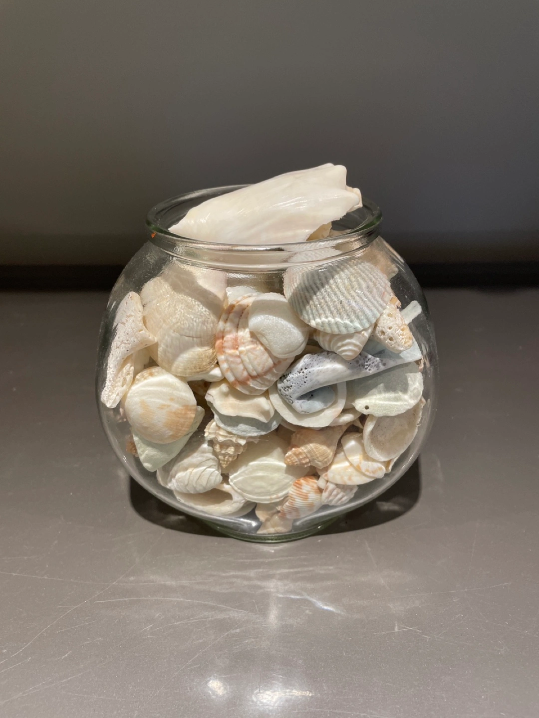 1000+Assortment of seashells in a glass jar. Great for decor.