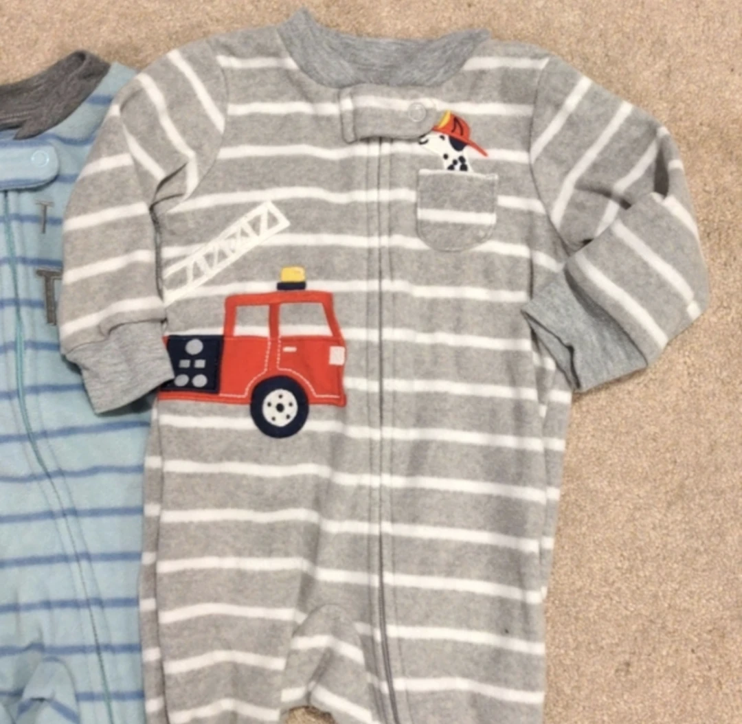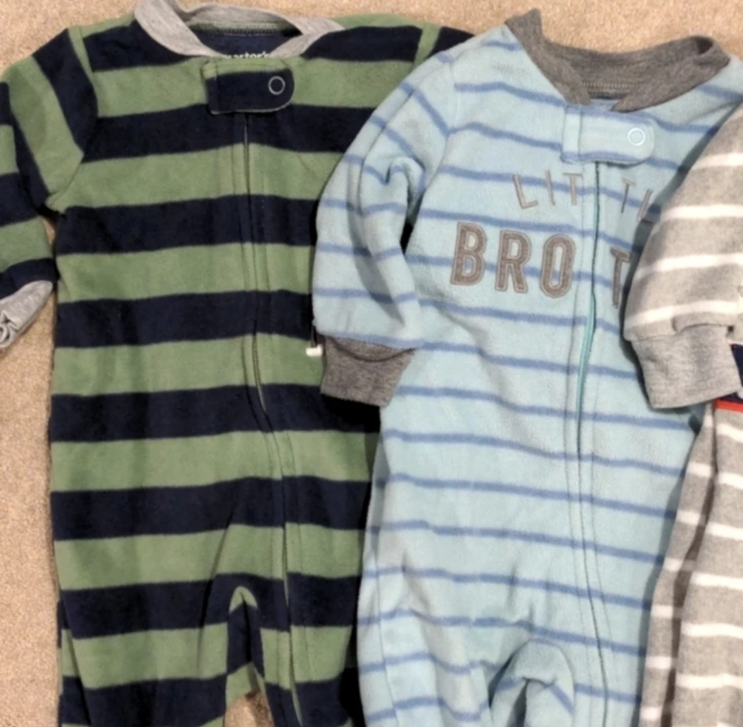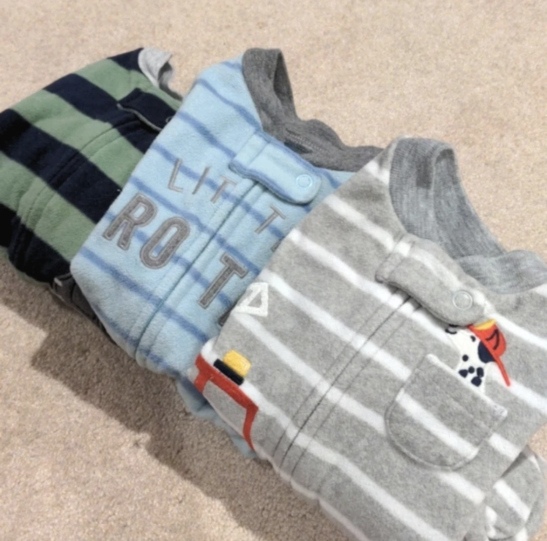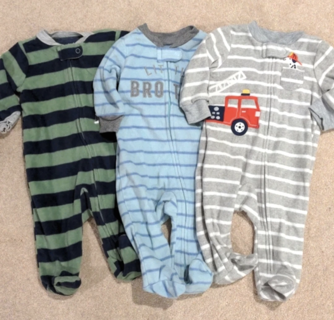 Porch pick up location in MARKHAM (Bayview Ave/John street) Carter's set of 4 fleece onesies (4th one not in photos) 3 months No rips stains or tears. In excellent condition. Washed with unscented laundry detergent. From non-smoking non-pet and safe environment. Pick up location: Bayview/John