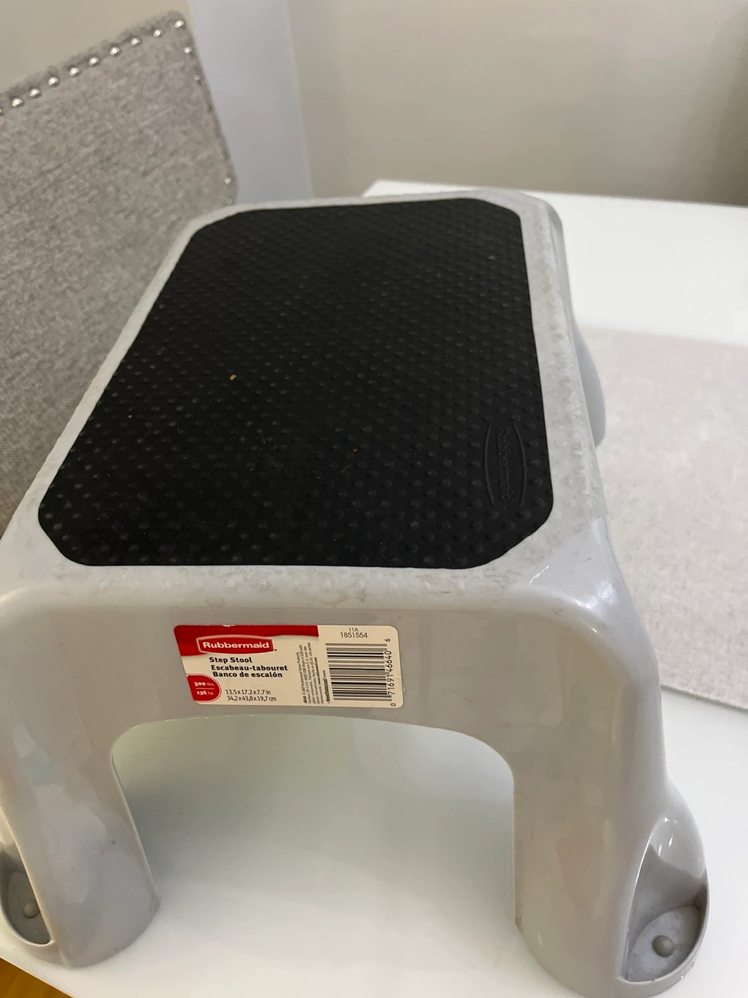 Grey plastic step stool with black non-slip top. Has a 300lb weight limit.pick up not available from 11-4 to 11-18