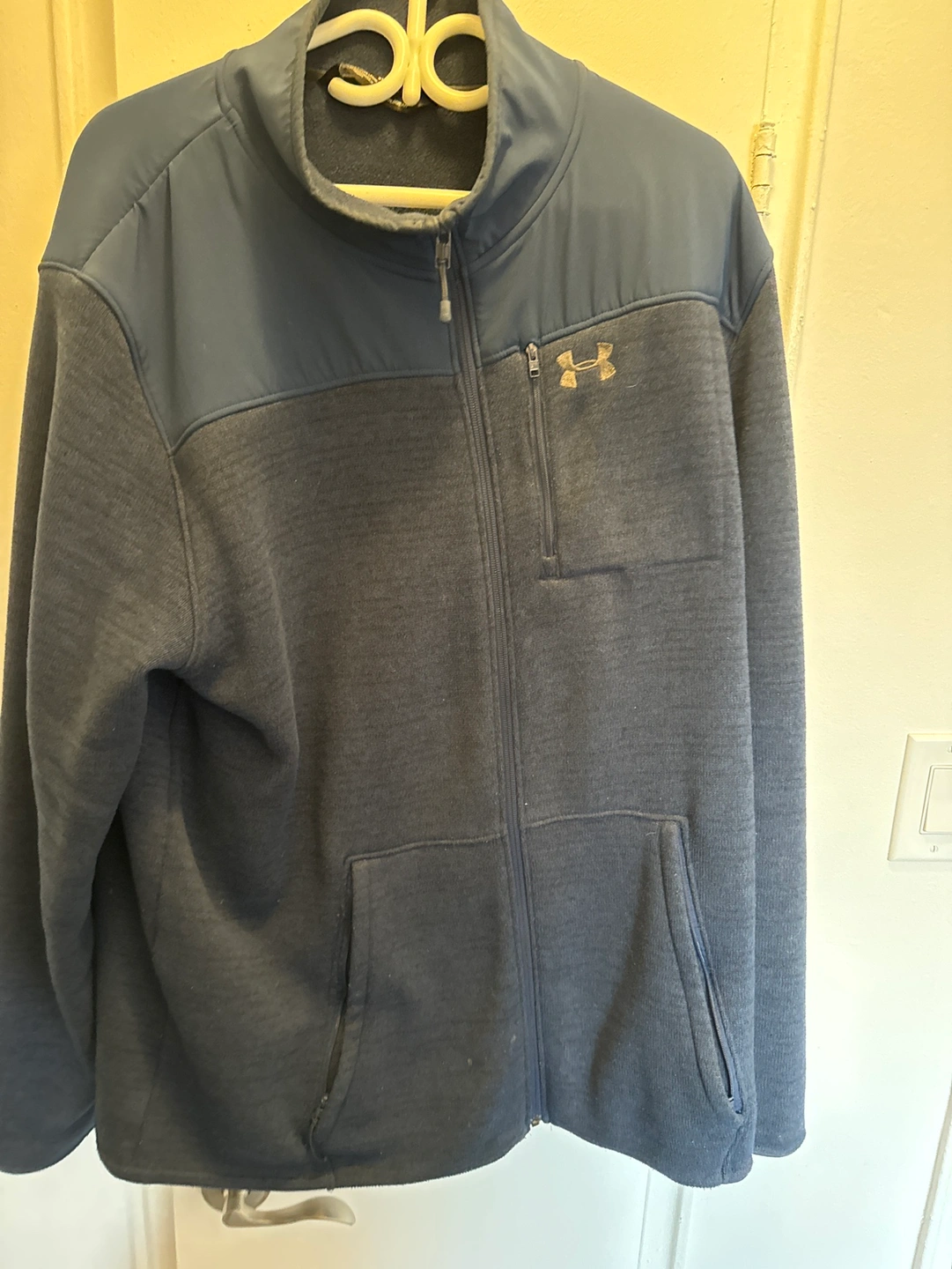 54Blue zip-up jacket with pockets.