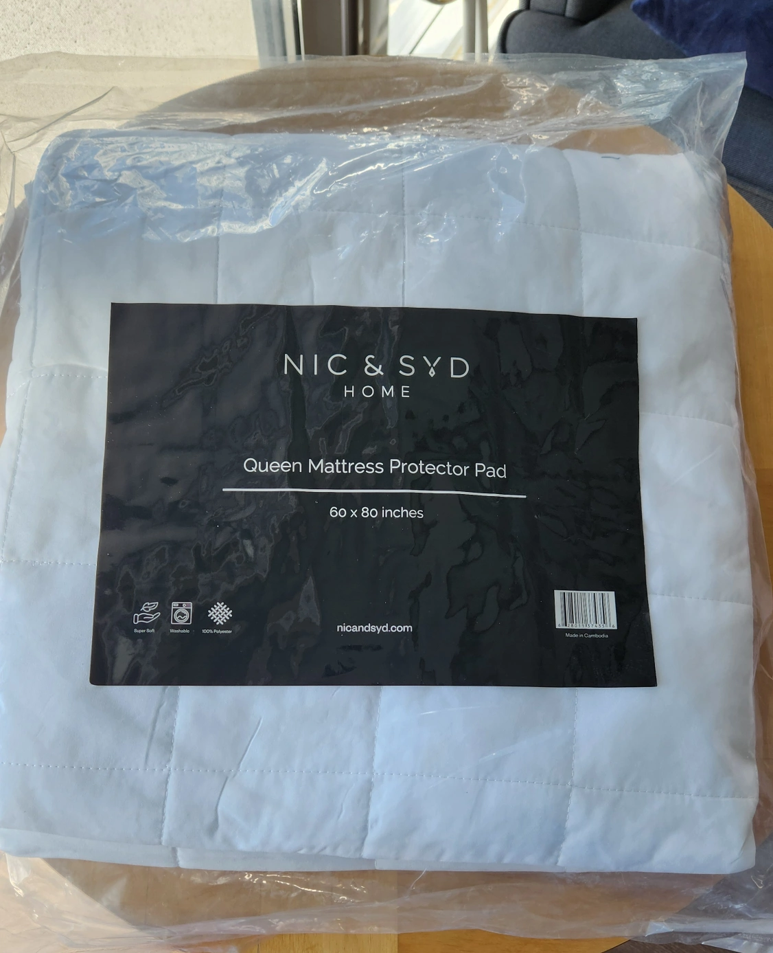 New, queen sized mattress protector pad. Made of 100% polyester.