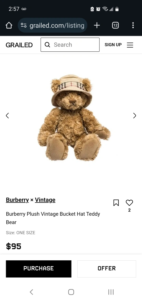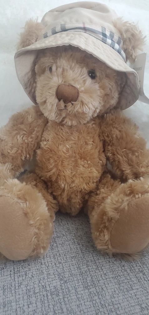 Vintage Burberry teddy bear wearing a bucket hat. Comes with the original tag. Excellent condition.