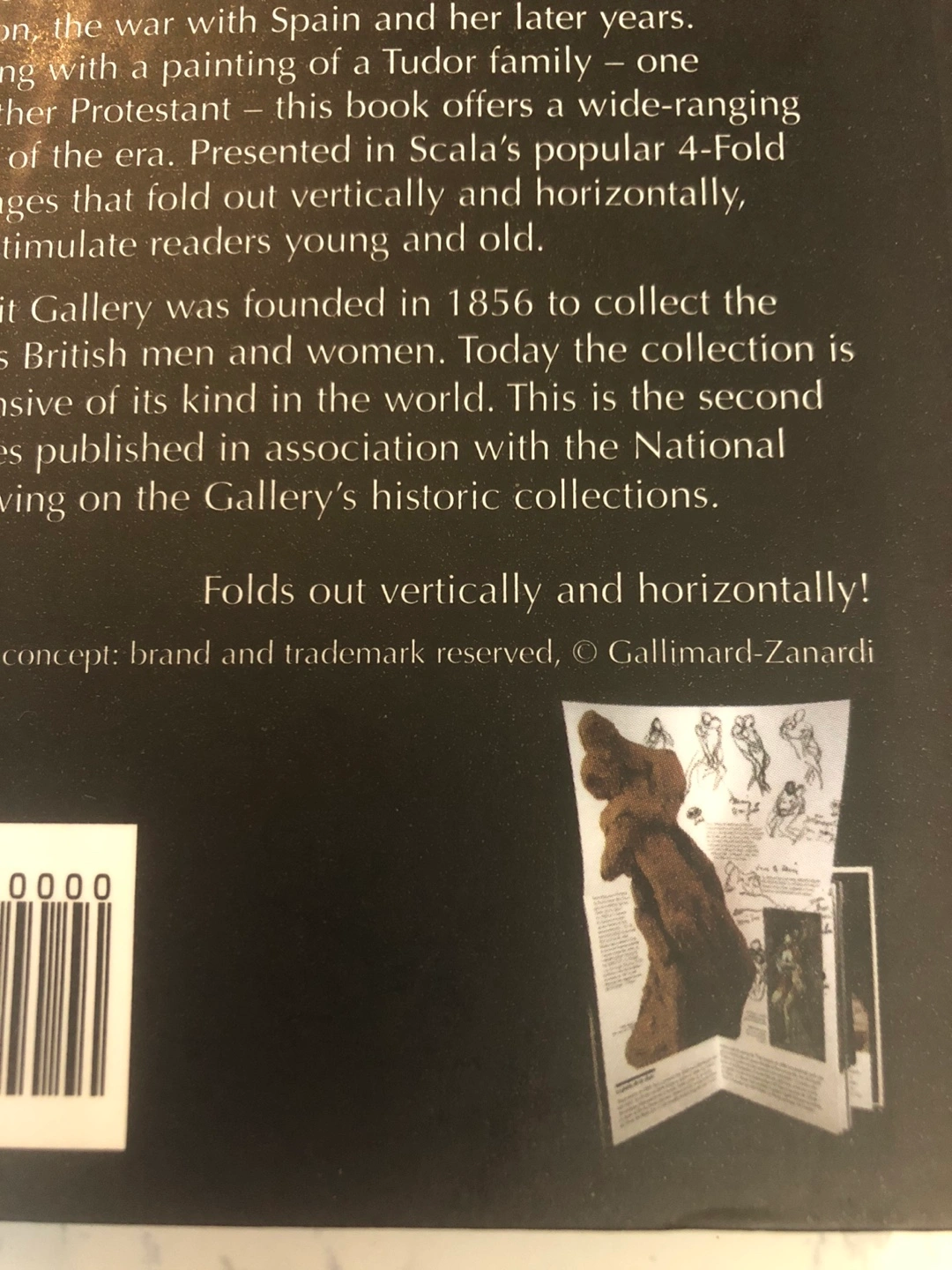 Great gift/stocking stuffer for people who love the monarchy. Book about the Tudors, folds out vertically and horizontally. The National Portrait Gallery, London possesses such an important collection of Tudor portraits that a whole gallery is devoted to them. Written by the Gallery's Clare Gittings, this book includes the earliest portraits of King Henry VII's magnificent court in the 1500s, Hans Holbein the Younger's masterful painting of Henry VIII and his wives, and the Gallery's first ever acquisition, a striking portrait of William Shakespeare.
