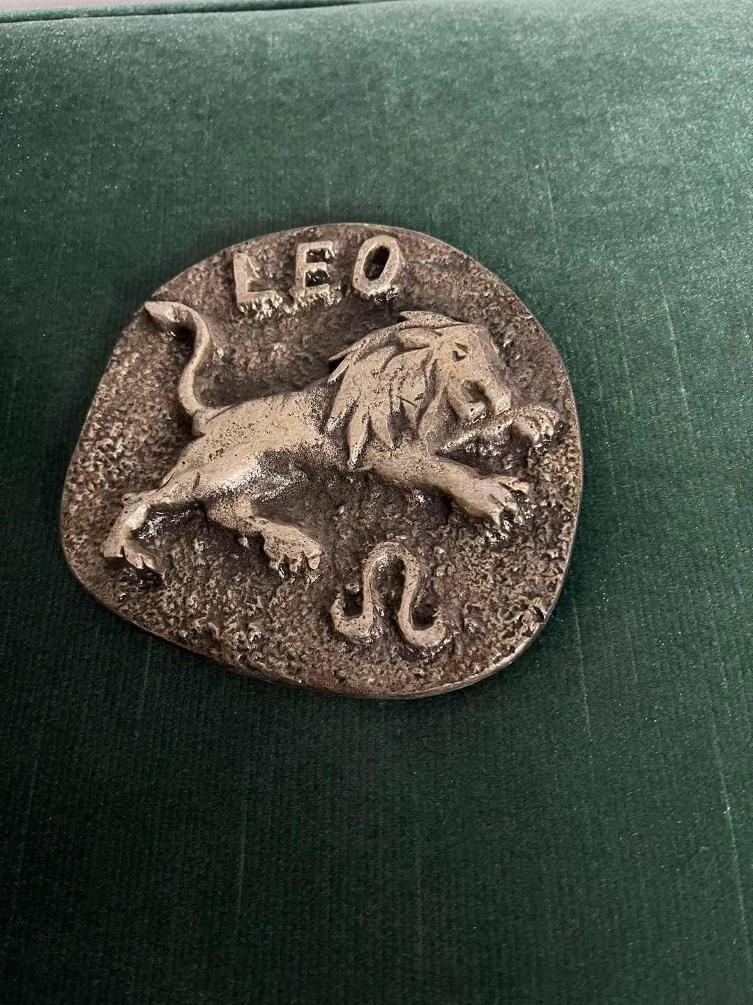 404Metal wall decor featuring the Leo zodiac sign. Comes with a hanging peg on the back.